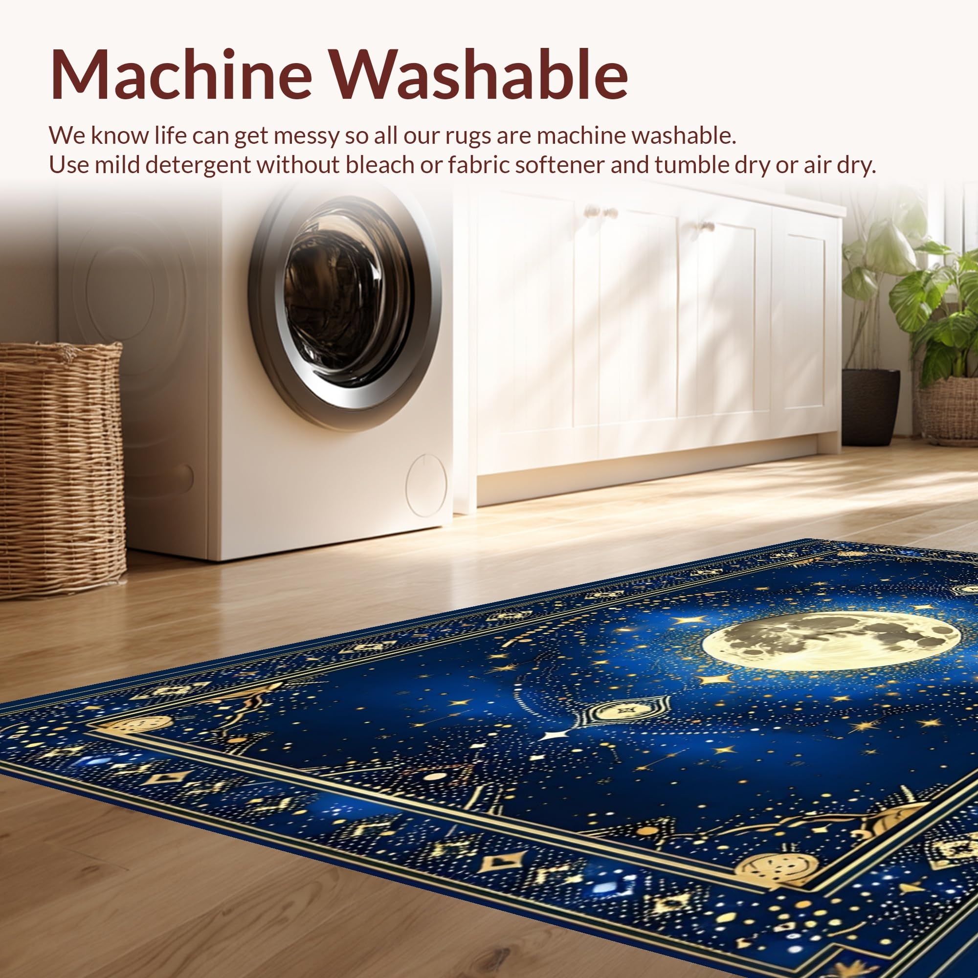 - Machine Washable: Our rugs can be easily thrown in the wash machine.