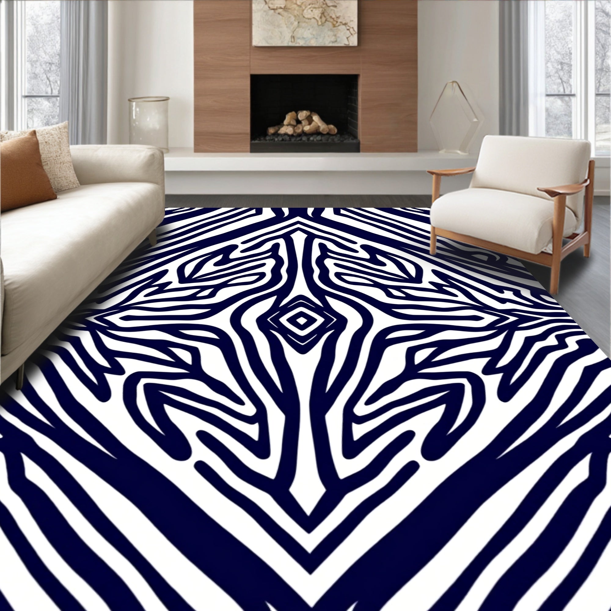Flatwoven High Traffic Area Rug, Abstract Chevron with Bold Zigzag Accent Stripes, Non Slip, Stain Resistant, Washable Area Rugs for Living Room, Bedroom (Blue) Overview: