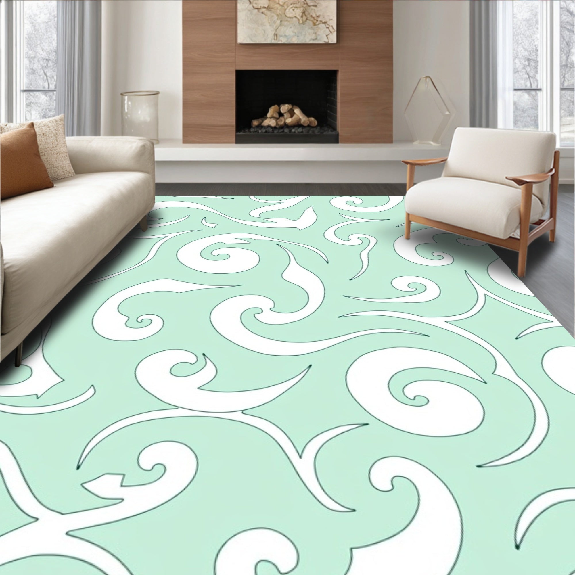 Flatwoven High Traffic Area Rug, Abstract Cloud Swirl Contemporary Art, Non Slip, Stain Resistant, Washable Area Rugs for Living Room, Bedroom (Green) Overview: