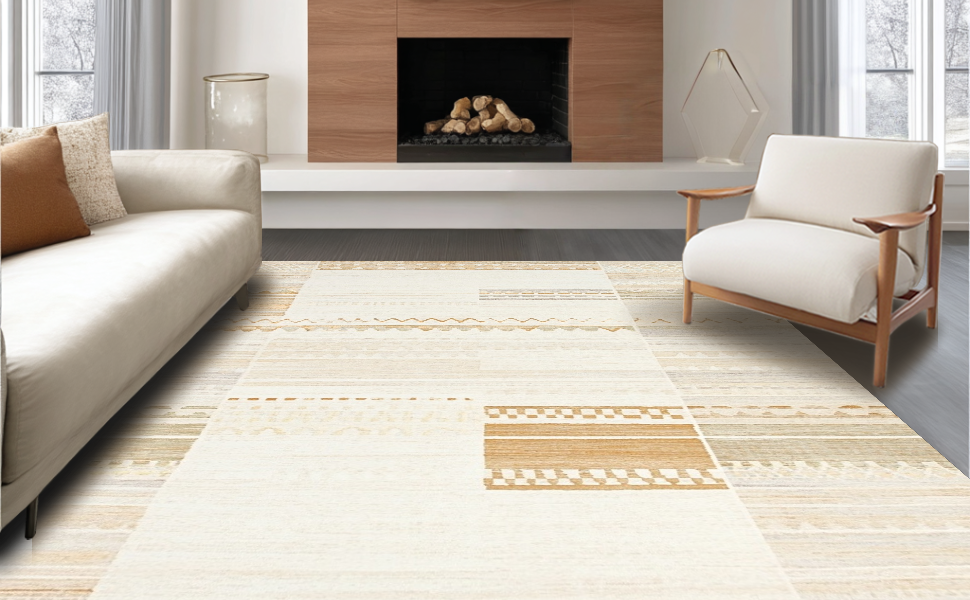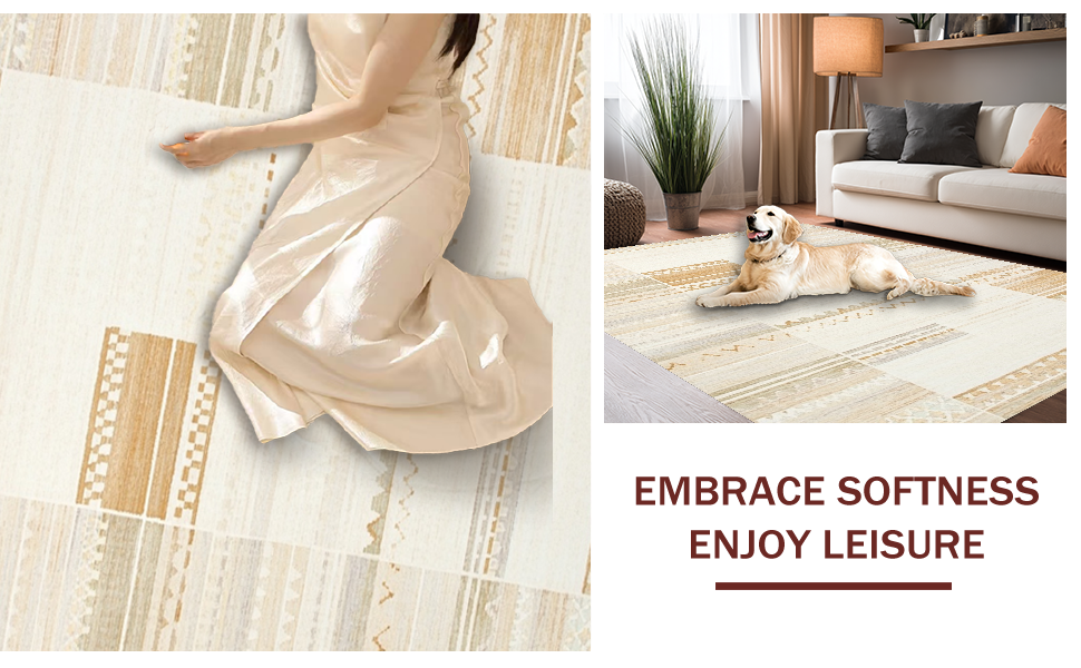 Ultra Soft Area Rug, Non Slip, Stain Resistant, Washable Area Rugs for Living Room, Bedroom, Abstract Cream Toned Elegance(Beige) Overview: