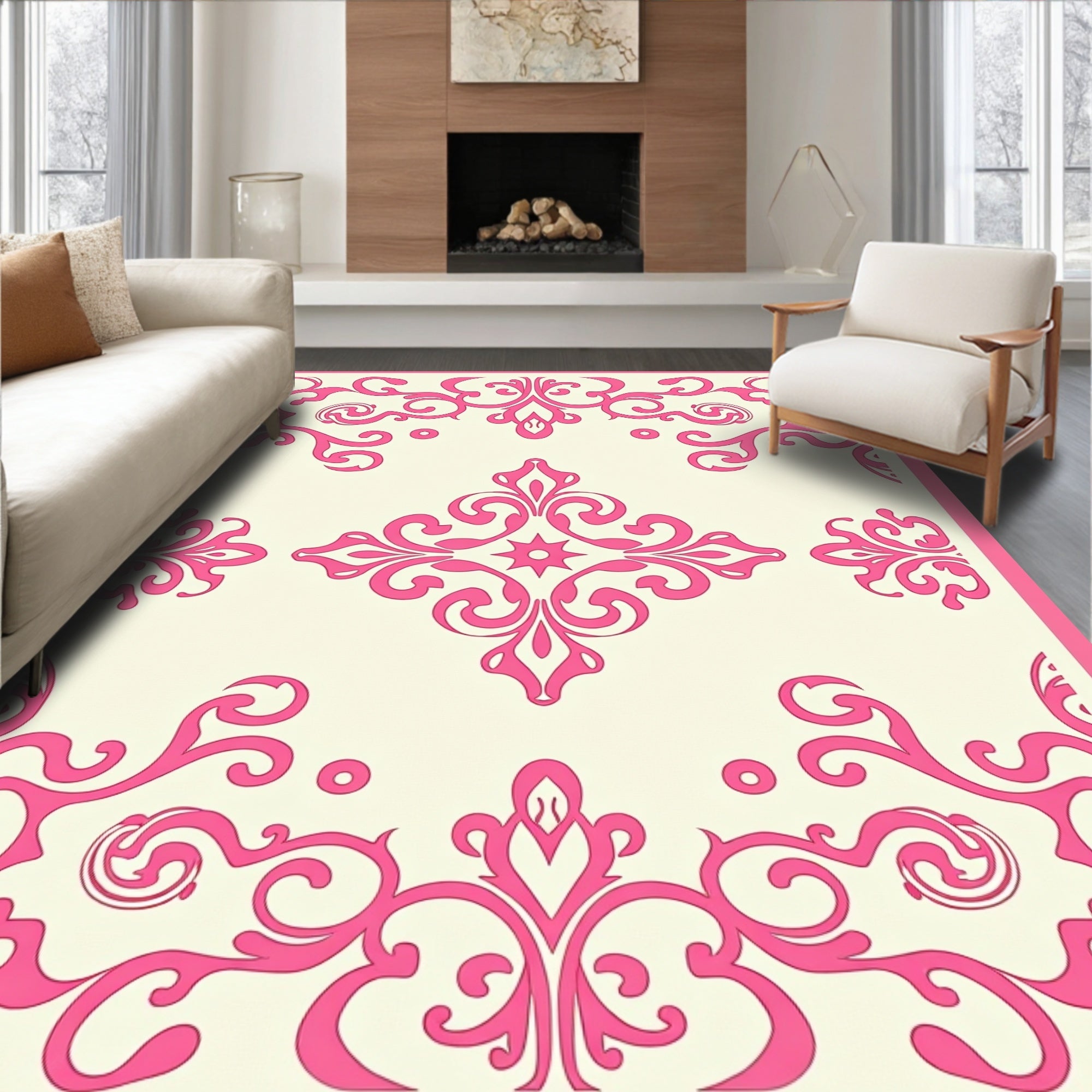 Flatwoven High Traffic Area Rug, Abstract Damask Scroll, Non Slip, Stain Resistant, Washable Area Rugs for Living Room, Bedroom (Pink) Overview: