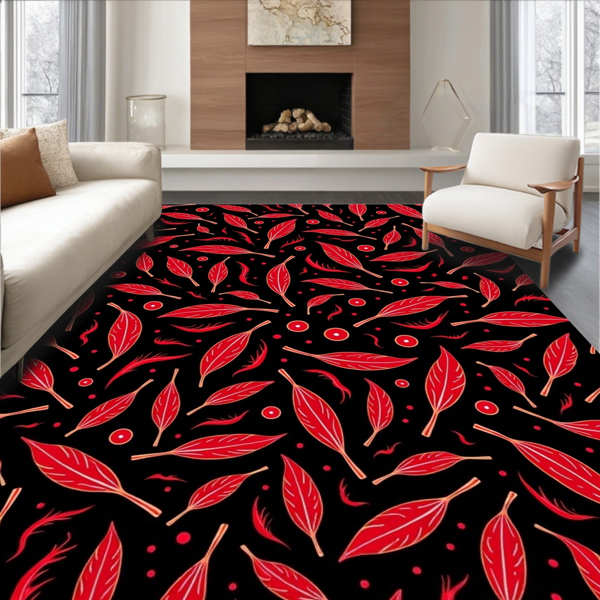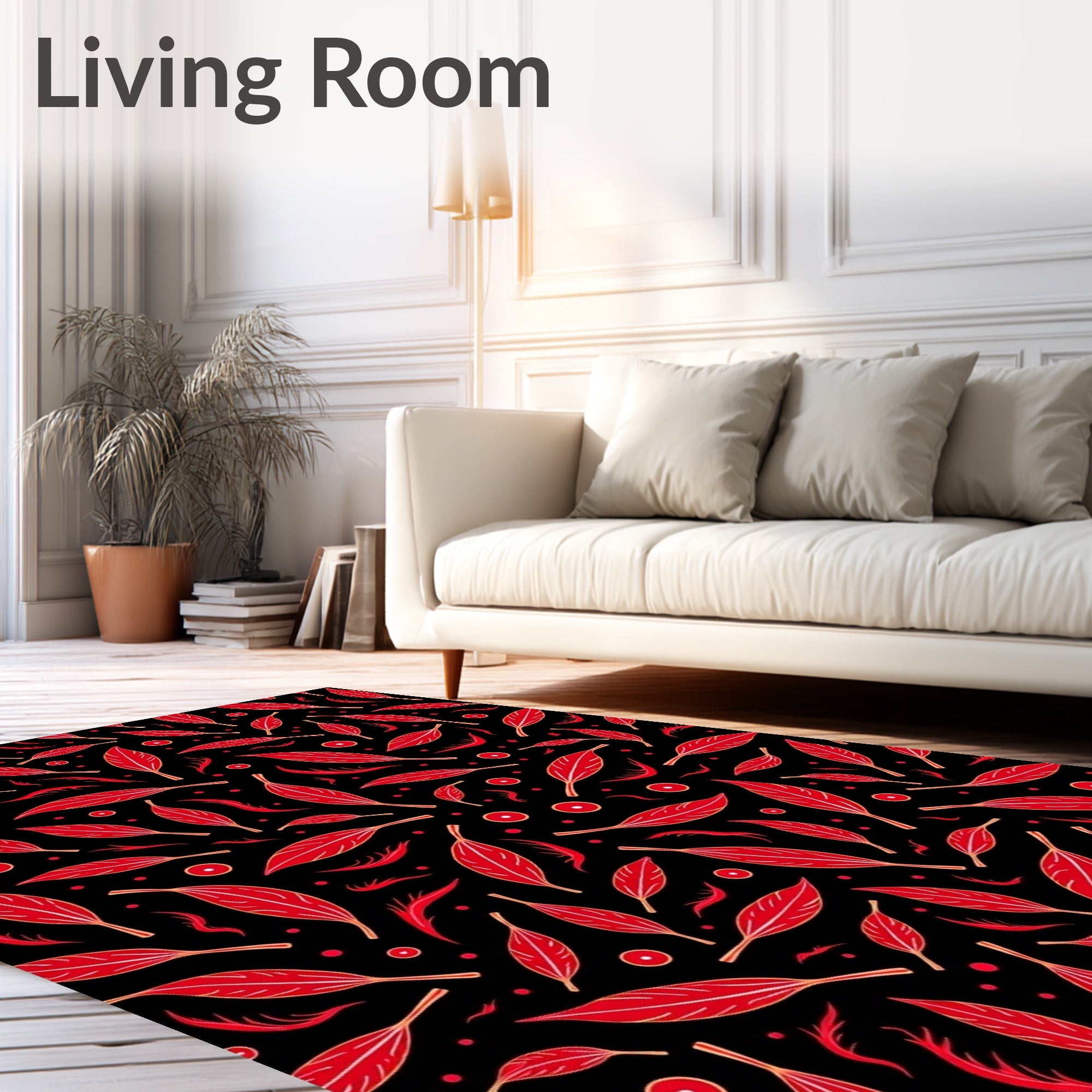 Flatwoven High Traffic Area Rug, Abstract Feather Swirls with Whimsical Dot Embellishments, Non Slip, Stain Resistant, Washable Area Rugs for Living Room, Bedroom (Black) Overview: