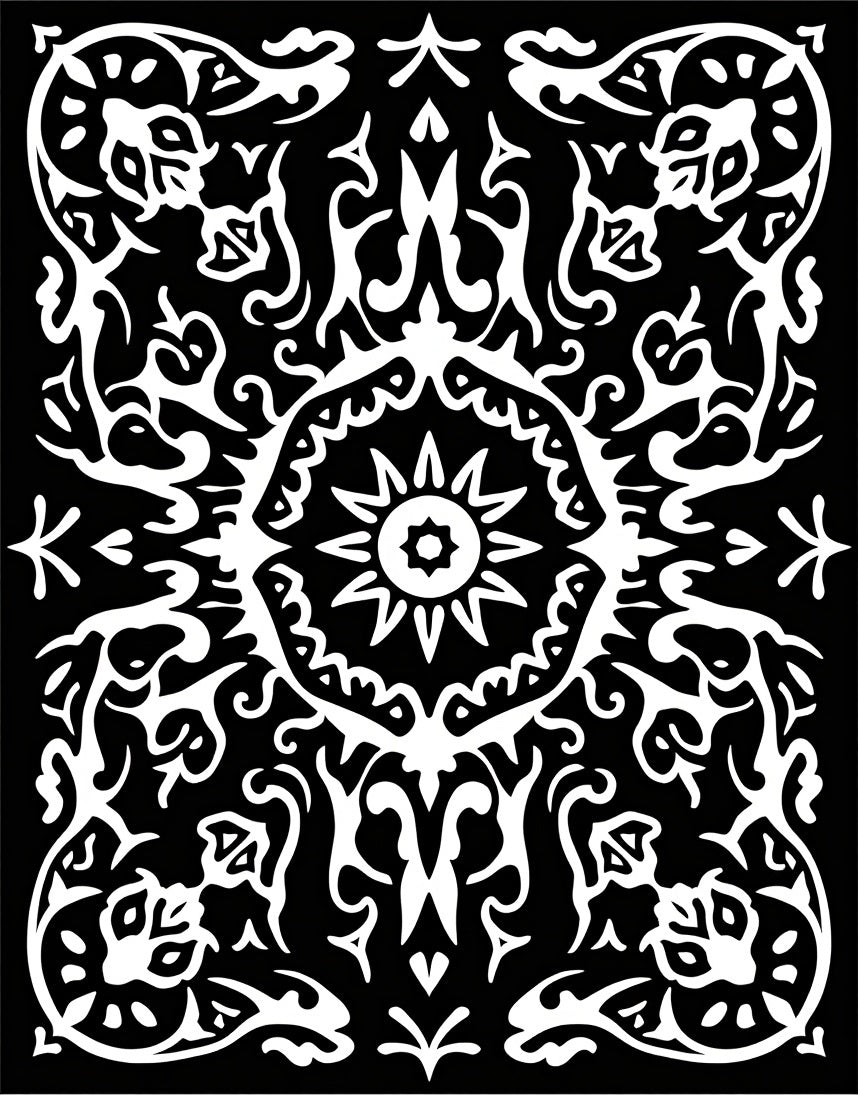 Abstract Floral Filigree with Brushstroke Boho Details(Black)