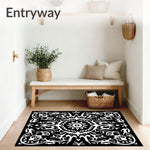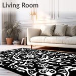 Flatwoven High Traffic Area Rug, Abstract Floral Filigree with Brushstroke Boho Details, Non Slip, Stain Resistant, Washable Area Rugs for Living Room, Bedroom (Black) Overview: