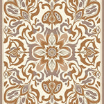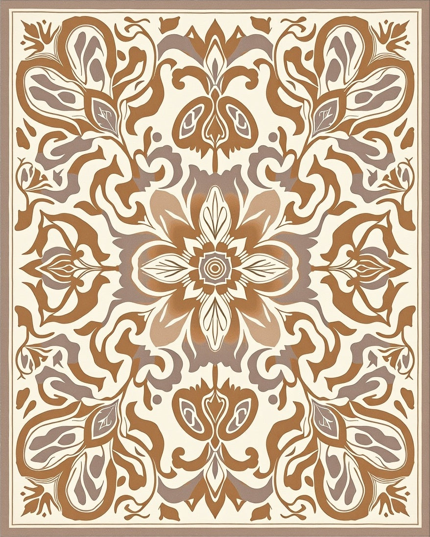 Abstract Floral Medallion Design with Flowing Vines and Leaf Accents(Ivory)