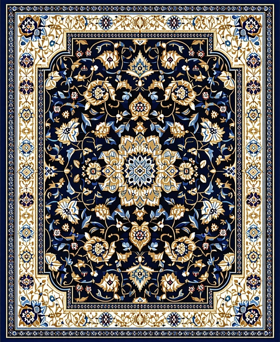 Flatwoven High Traffic Area Rug, Abstract Floral Medallion, Non Slip, Stain Resistant, Washable Area Rugs for Living Room, Bedroom (Blue) Overview: