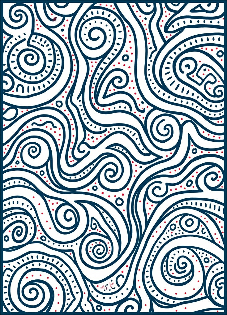 Abstract Floral Motifs Interwoven With Curvilinear Vines And Dotted Accents(Blue)