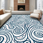 Flatwoven High Traffic Area Rug, Abstract Floral Motifs Interwoven With Curvilinear Vines And Dotted Accents, Non Slip, Stain Resistant, Washable Area Rugs for Living Room, Bedroom (Blue) Overview: