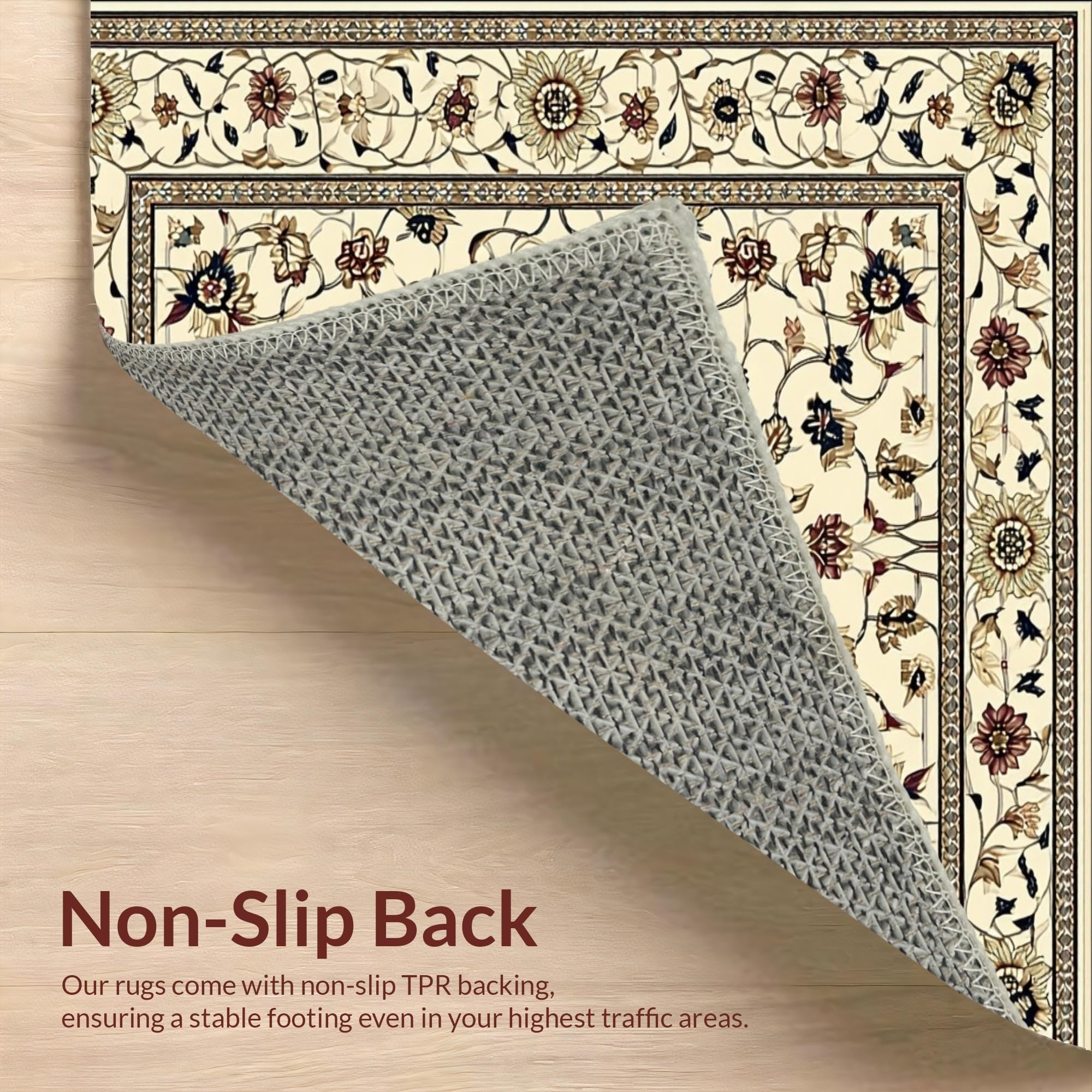Ultra Soft Area Rug, Non Slip, Stain Resistant, Washable Area Rugs for Living Room, Bedroom, Abstract Floral Runner Beige/Dark Brown(Beige) Overview: