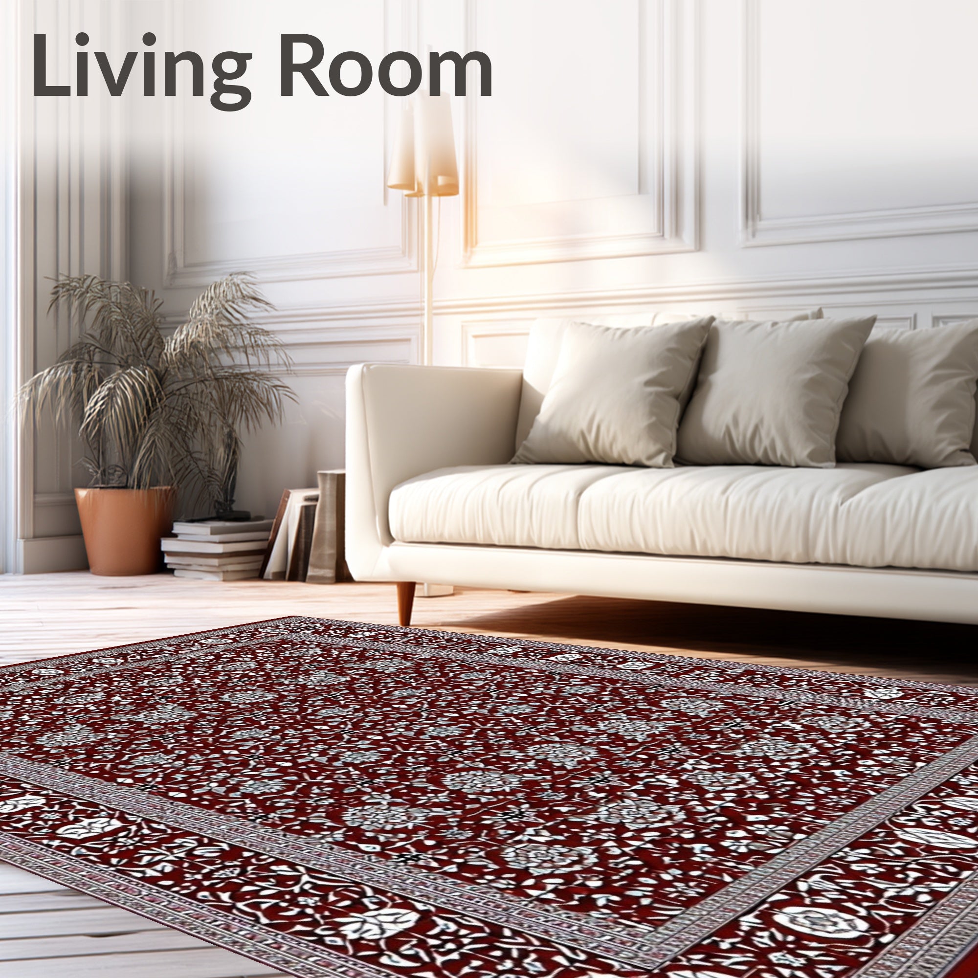 Ultra Soft Area Rug, Non Slip, Stain Resistant, Washable Area Rugs for Living Room, Bedroom, Abstract Floral Runner for(Red) Overview: