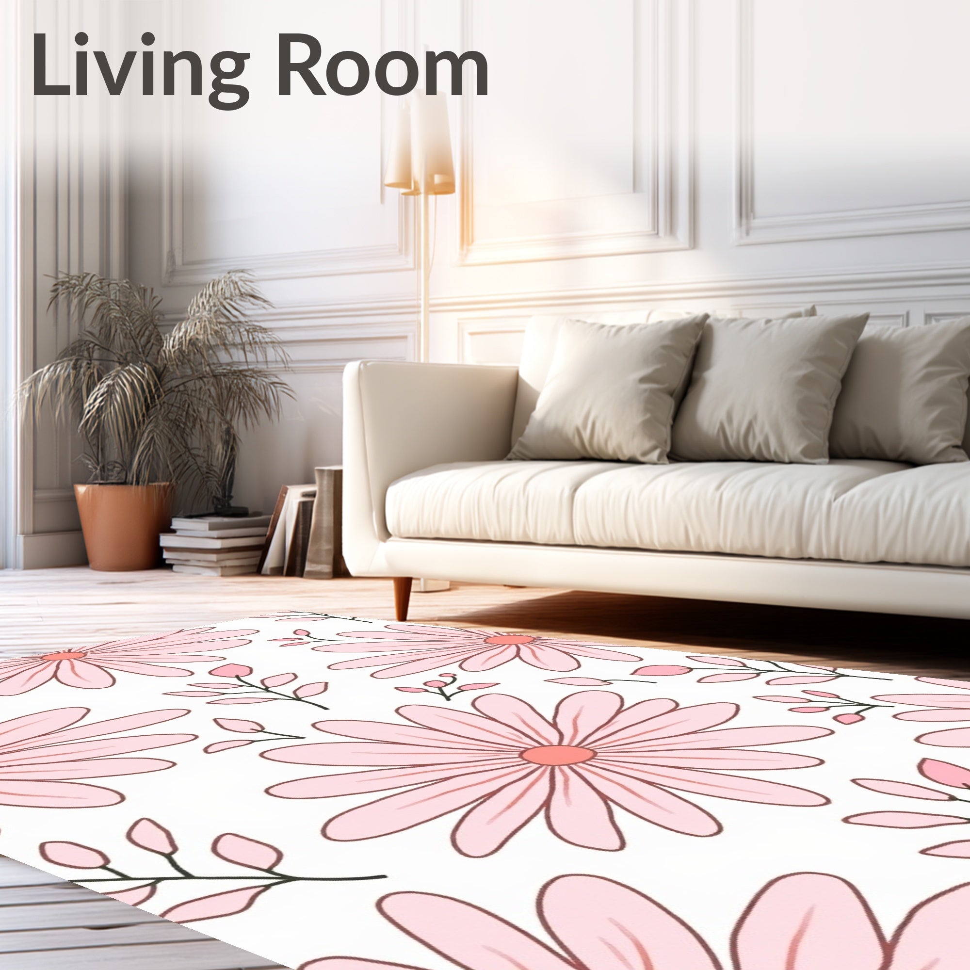 Flatwoven High Traffic Area Rug, Abstract Floral with Layered Petal Shapes and Flowing Lines, Non Slip, Stain Resistant, Washable Area Rugs for Living Room, Bedroom (Pink) Overview: