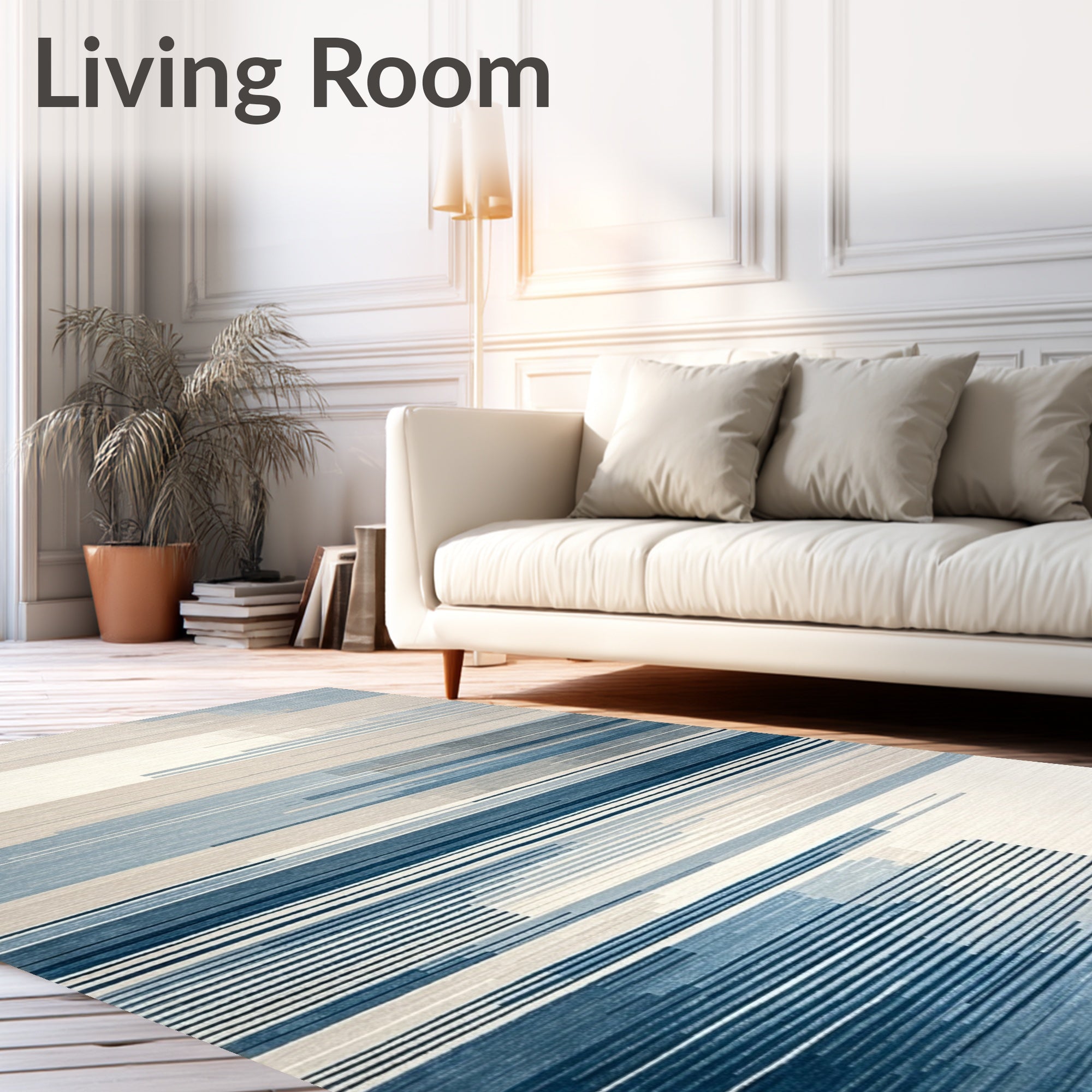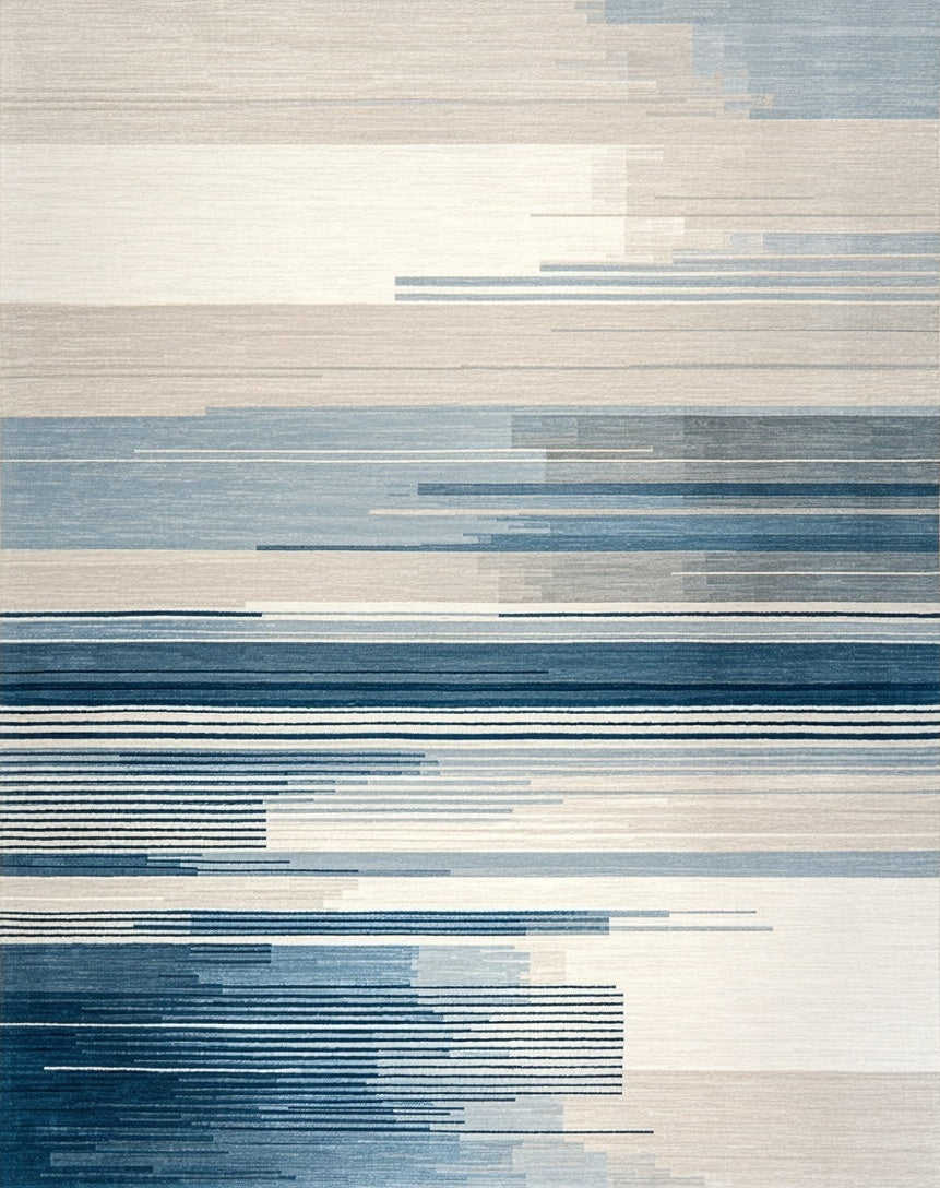 Ultra Soft Area Rug, Non Slip, Stain Resistant, Washable Area Rugs for Living Room, Bedroom, Abstract Fluid Stripe in Neutral Beige and Gray with Cool Blue Highlights(Beige) Overview: