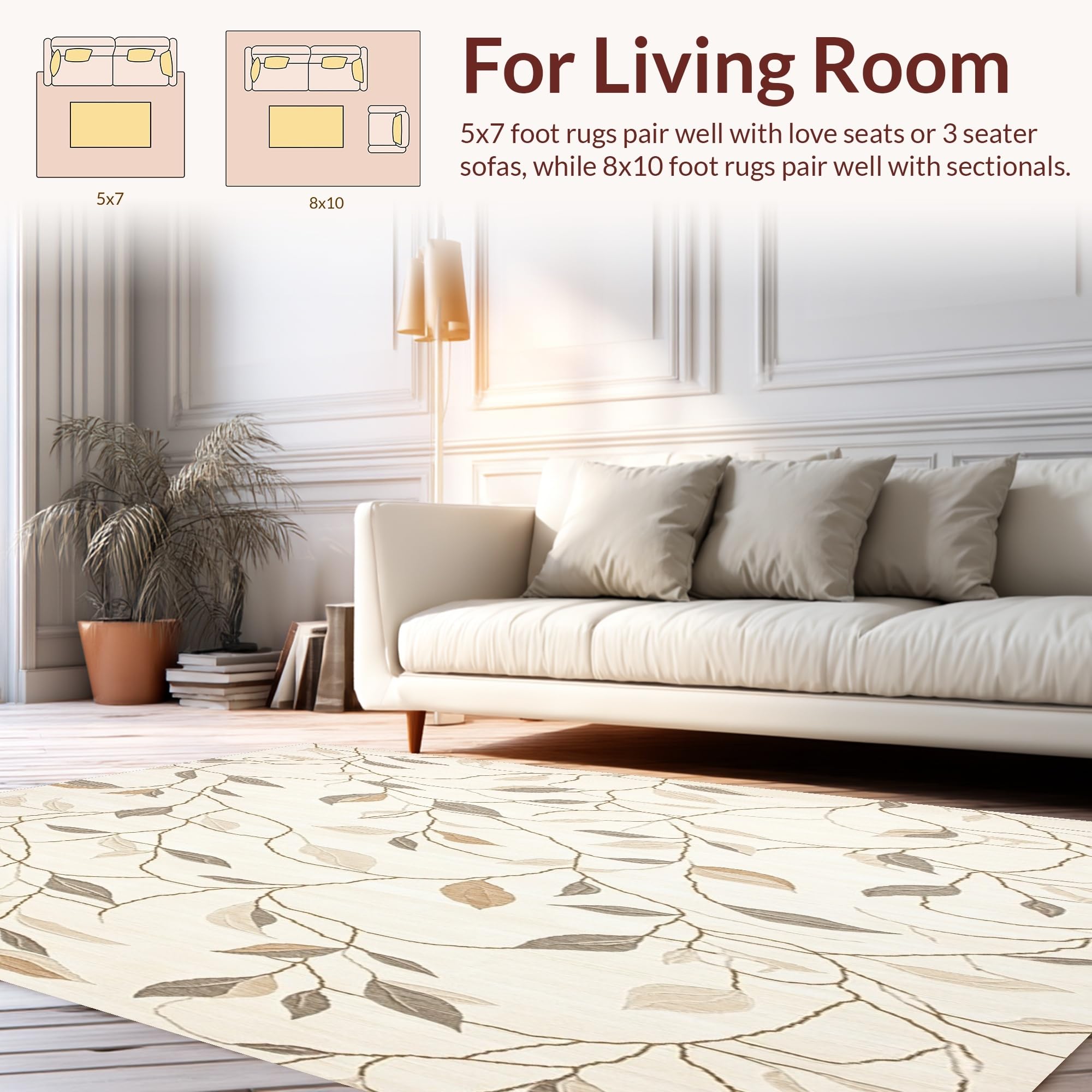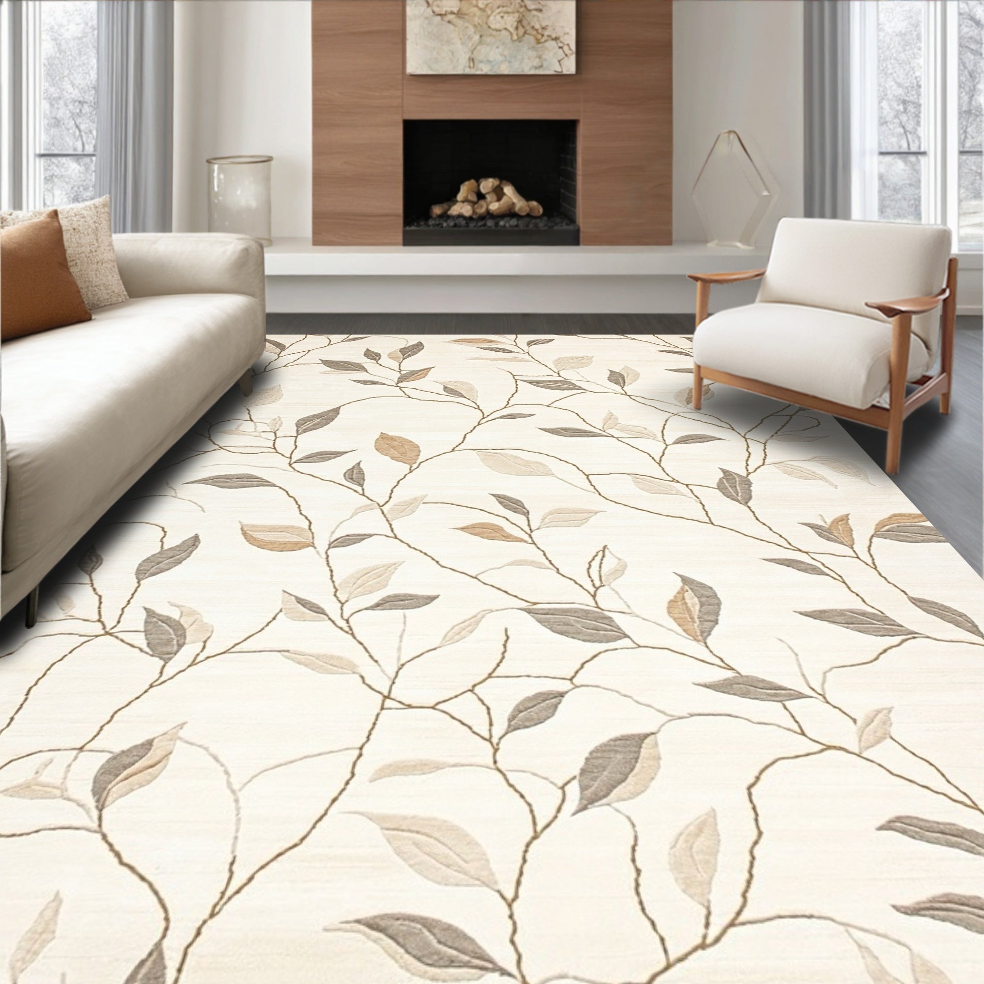 Ultra Soft Area Rug, Non Slip, Stain Resistant, Washable Area Rugs for Living Room, Bedroom, Abstract Foliage Area Round Portable for Any Deck Space(Beige) Overview: