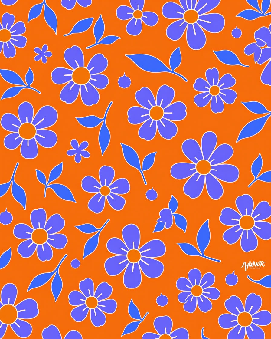 Abstract Garden Mosaic with Scattered Blossom Clusters(Orange)