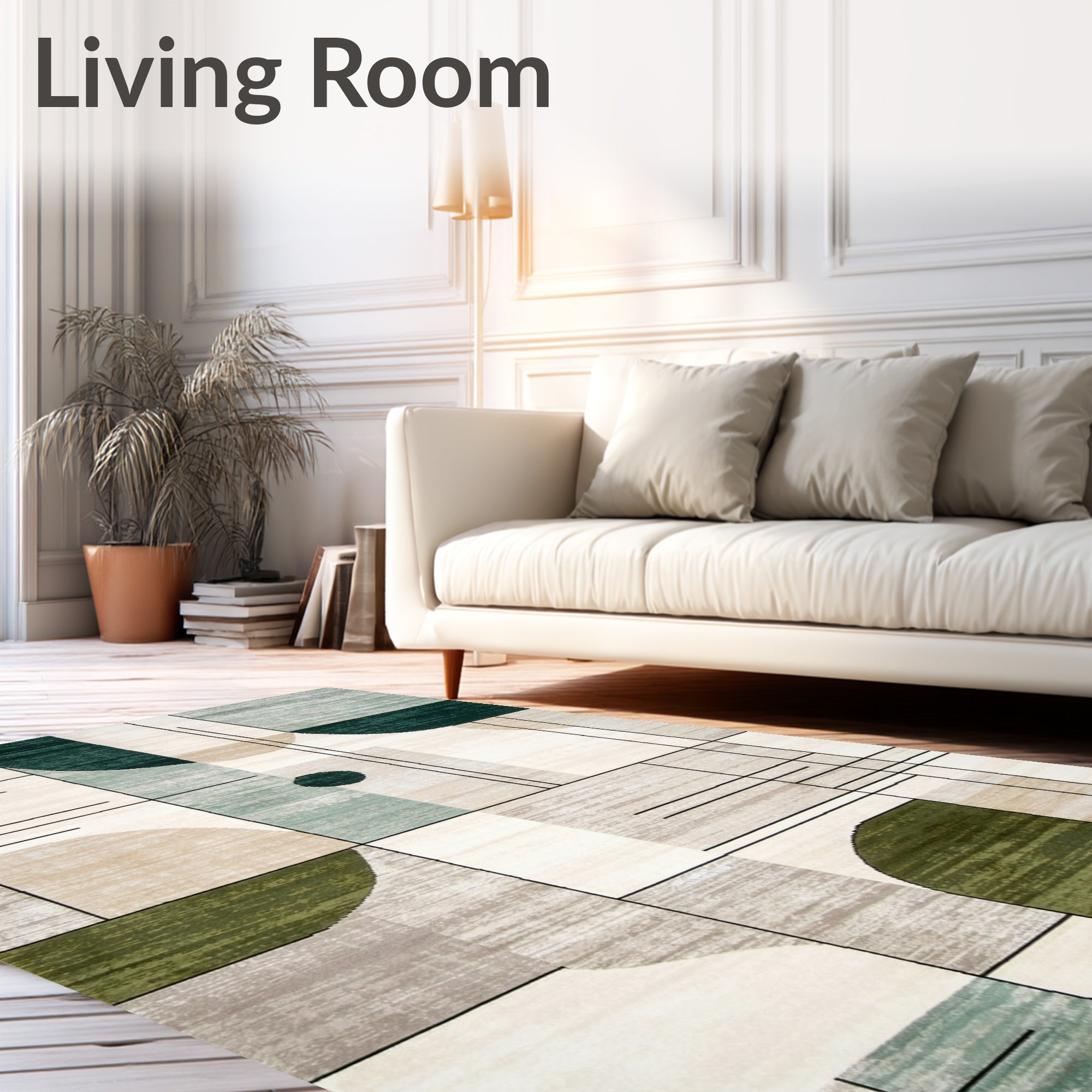 Ultra Soft Area Rug, Non Slip, Stain Resistant, Washable Area Rugs for Living Room, Bedroom, Abstract Geo Patch Low Pile Non Slip(Beige) Overview:
