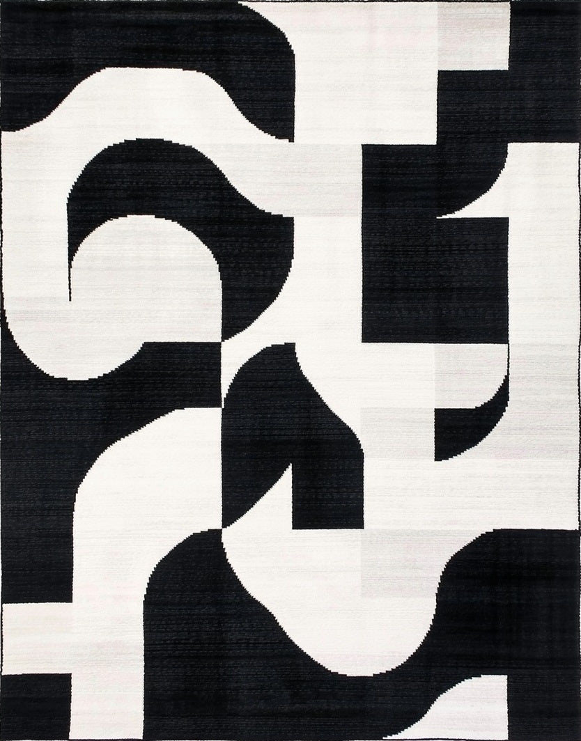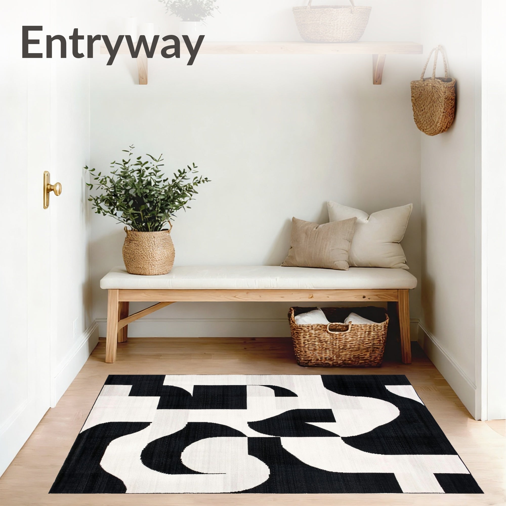 Abstract Geometric Area Rug Contemporary Black & White Pattern Mat(Black)