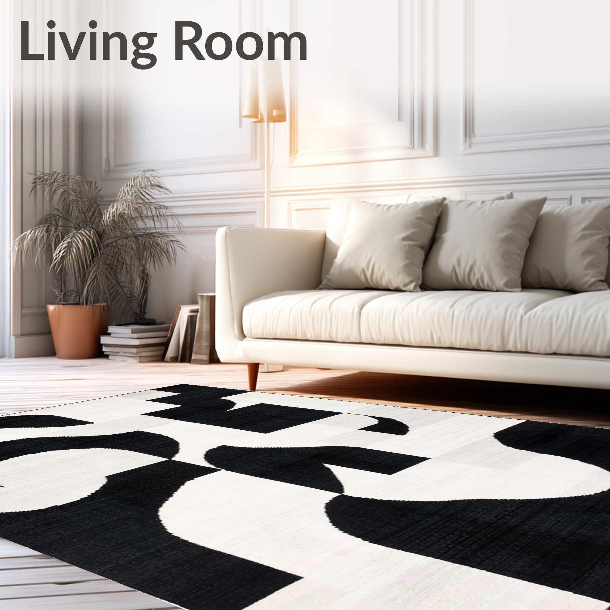 Ultra Soft Area Rug, Non Slip, Stain Resistant, Washable Area Rugs for Living Room, Bedroom, Abstract Geometric Area Rug Contemporary Black & White Pattern Mat(Black) Overview: