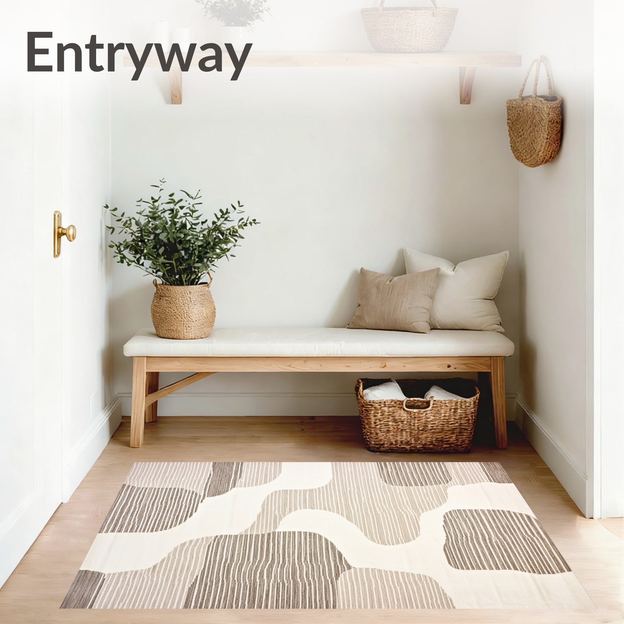 Ultra Soft Area Rug, Non Slip, Stain Resistant, Washable Area Rugs for Living Room, Bedroom, Abstract Geometric Beige Area Contemporary Wavy(Beige) Overview: