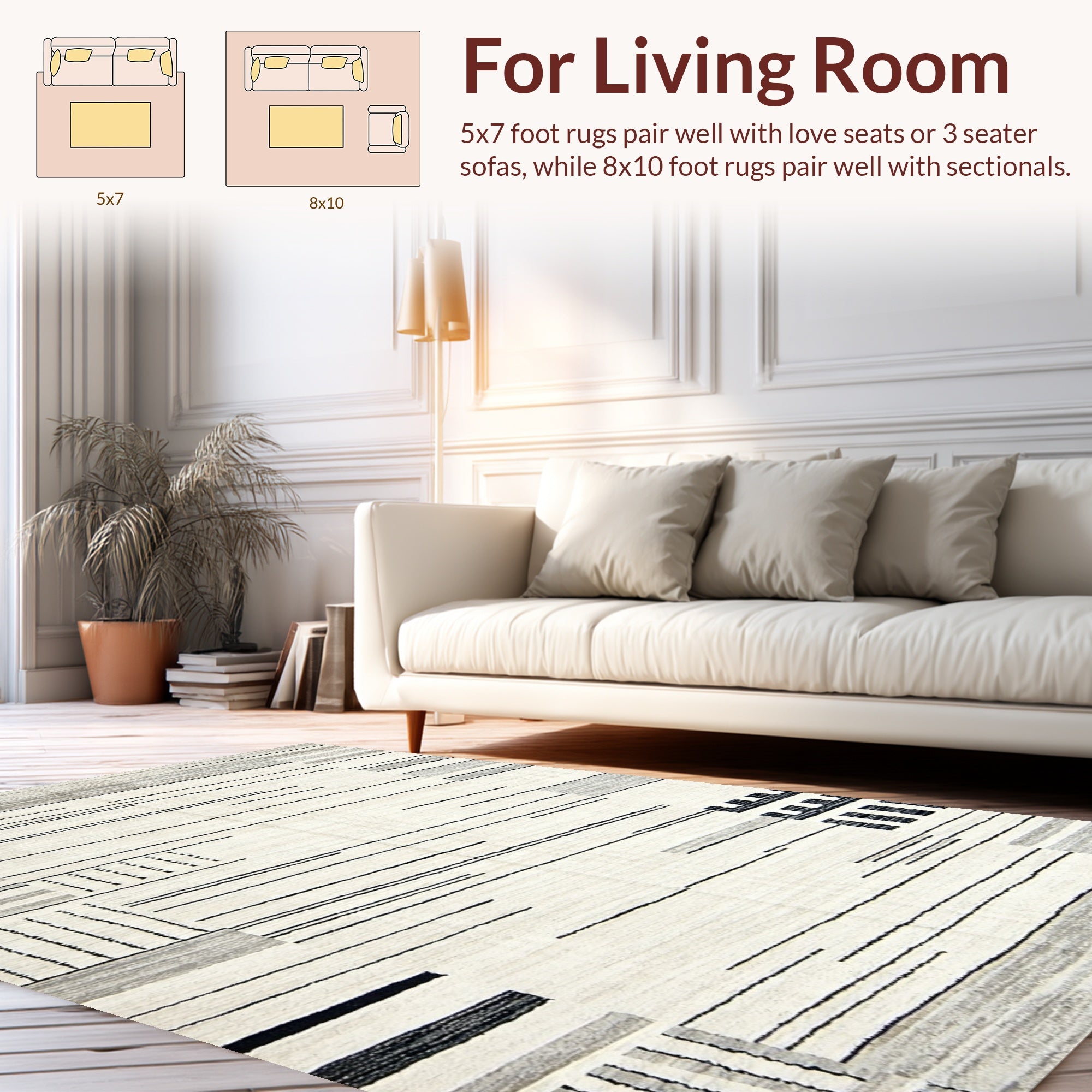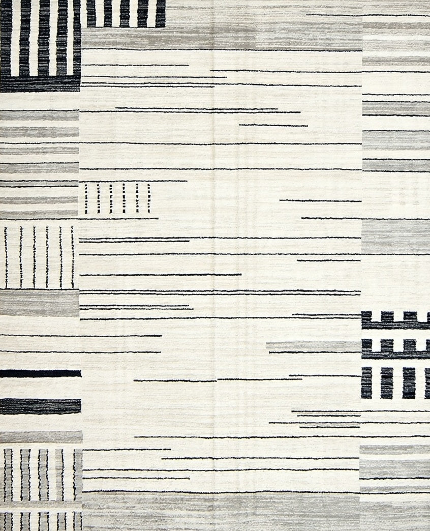 Flatwoven High Traffic Area Rug, Abstract Geometric Ivory, Non Slip, Stain Resistant, Washable Area Rugs for Living Room, Bedroom (Black) Overview: