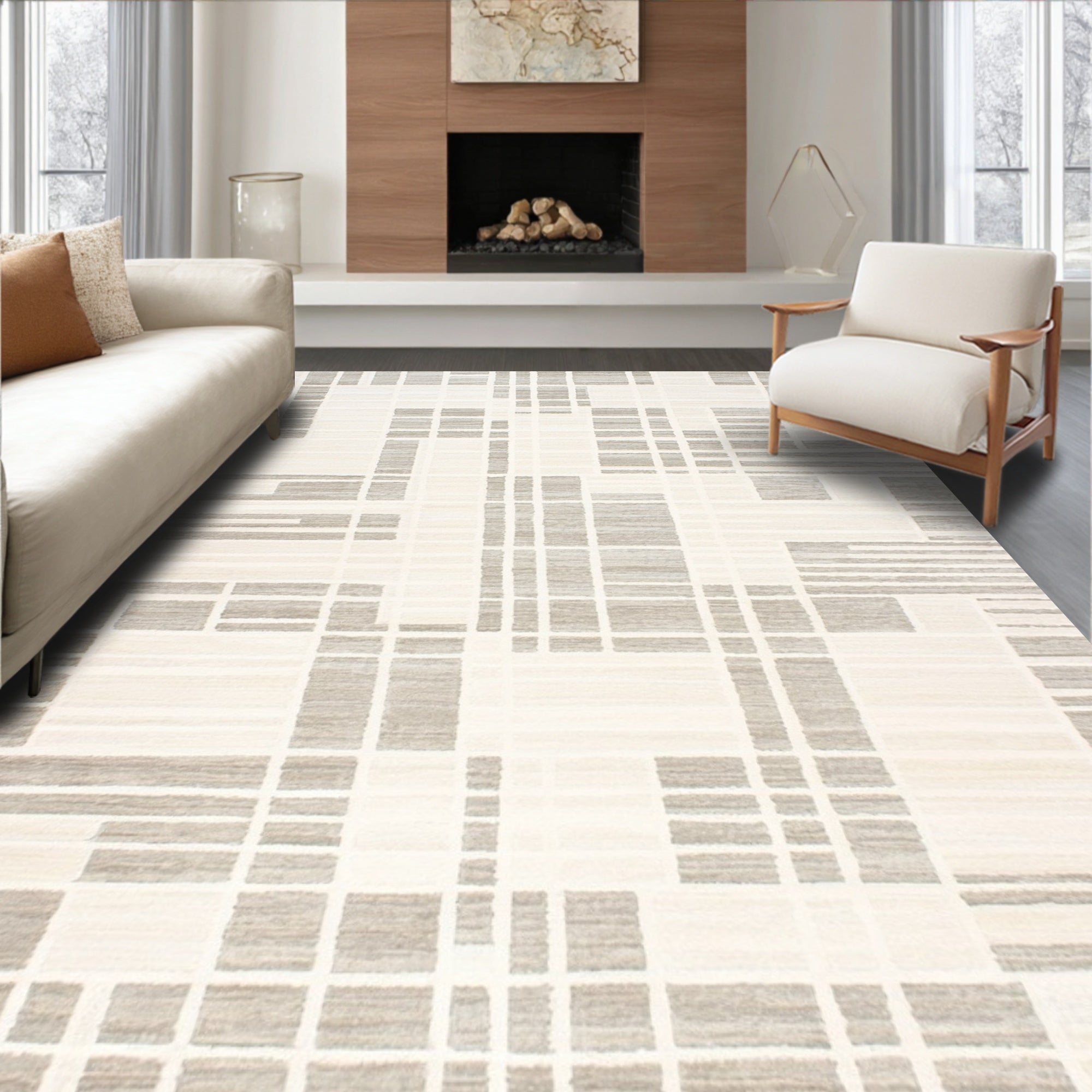 Abstract Geometric Non Slip Modern Art Inspired Beige(Beige)