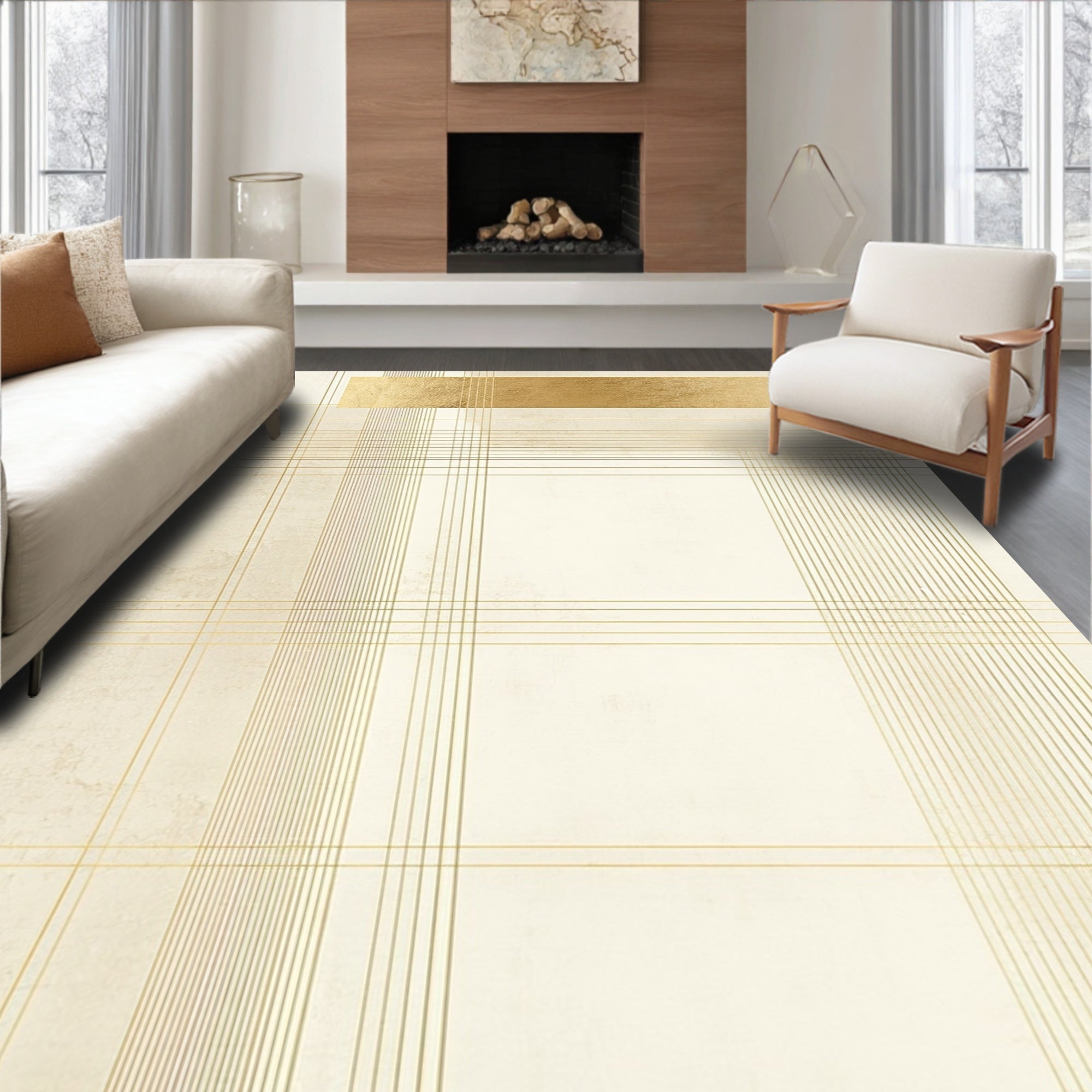 Ultra Soft Area Rug, Non Slip, Stain Resistant, Washable Area Rugs for Living Room, Bedroom, Abstract Gold Accent Line Area(Beige) Overview: