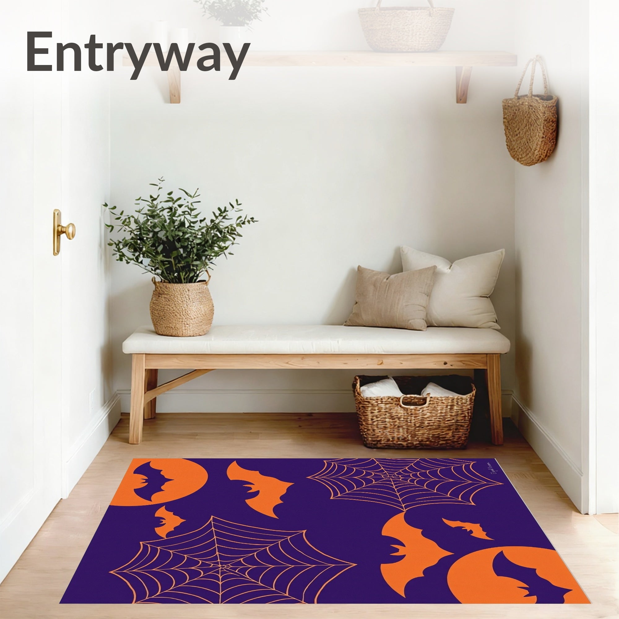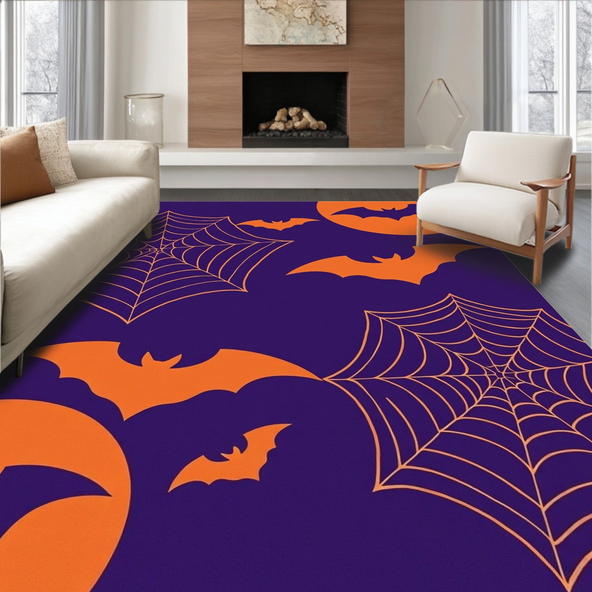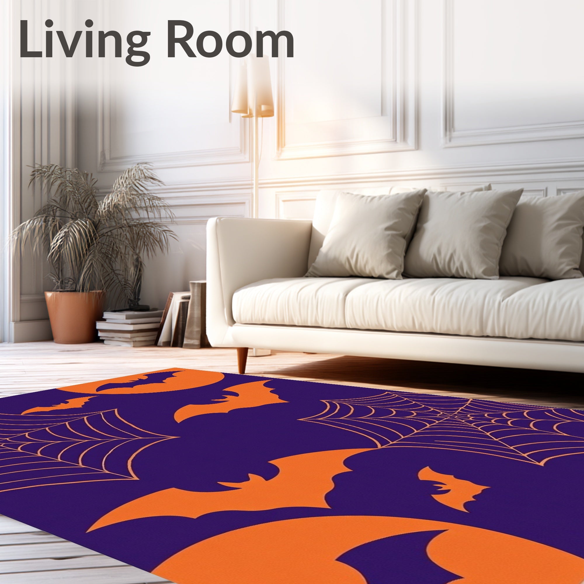 Flatwoven High Traffic Area Rug, Abstract Halloween Inspired, Non Slip, Stain Resistant, Washable Area Rugs for Living Room, Bedroom (Purple) Overview: