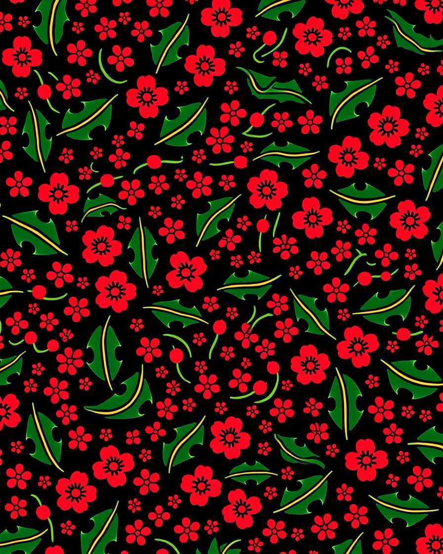 Abstract Holly Berry Clusters with Curved Leafy Vines(Red)
