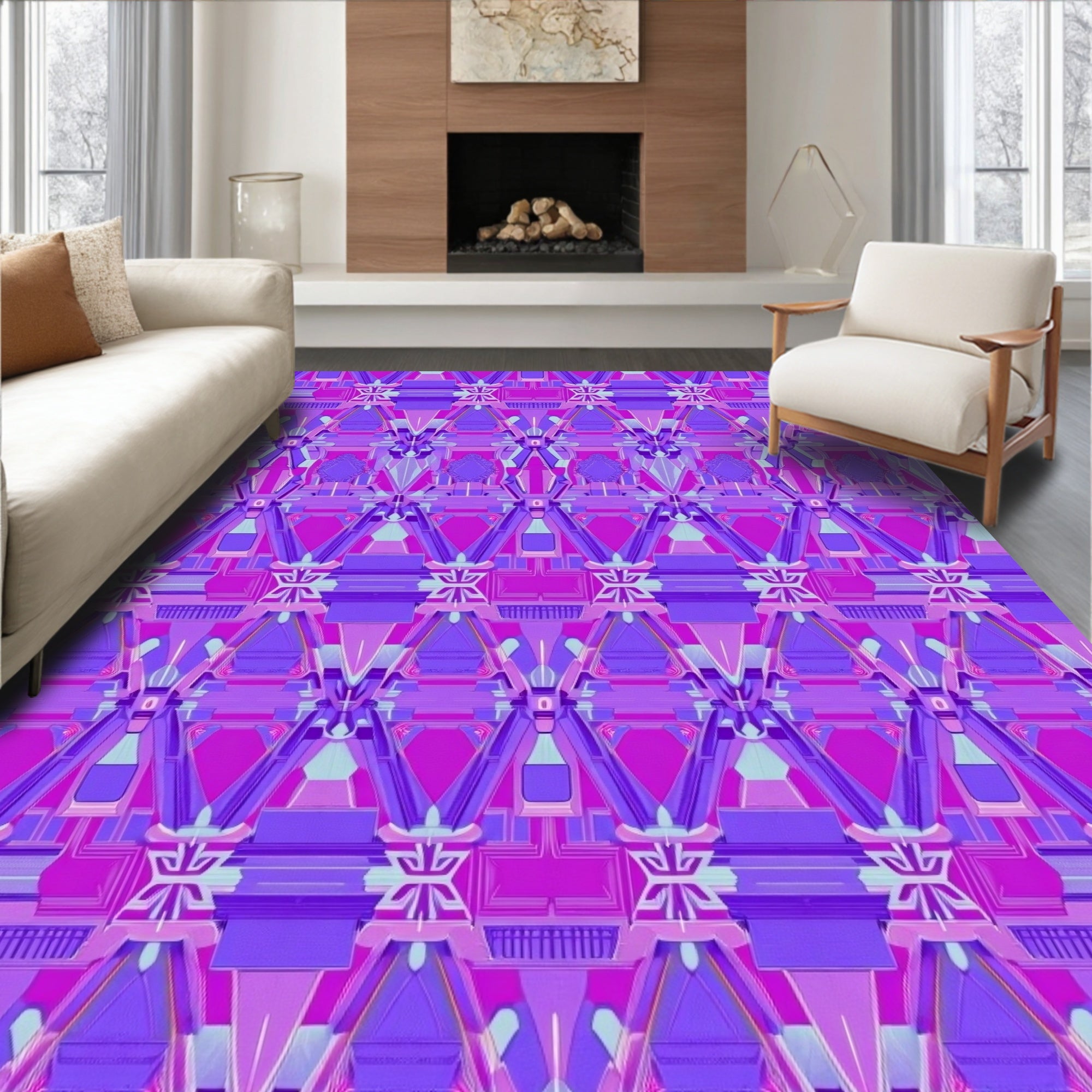 Ultra Soft Area Rug, Non Slip, Stain Resistant, Washable Area Rugs for Living Room, Bedroom, Abstract Interlocking Triangles with Dynamic Angles(Pink) Overview: