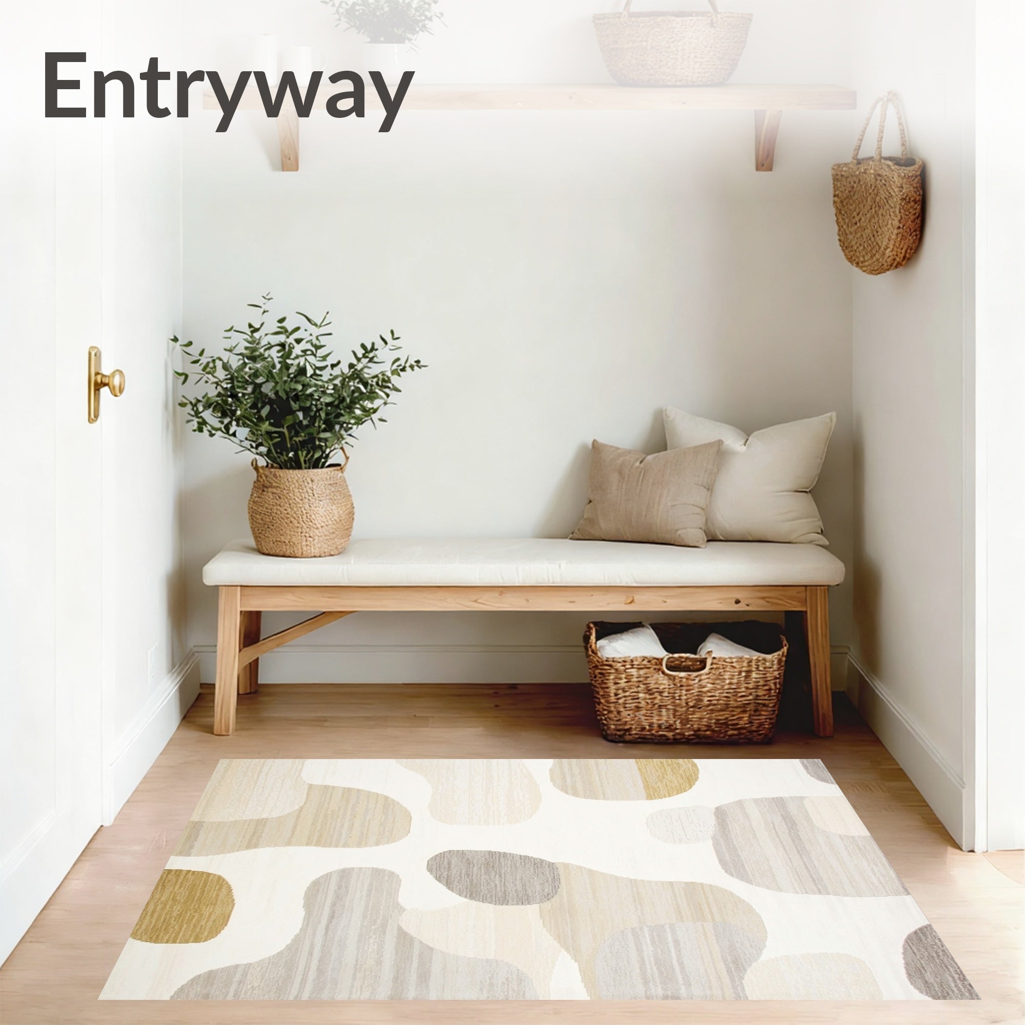 Ultra Soft Area Rug, Non Slip, Stain Resistant, Washable Area Rugs for Living Room, Bedroom, Abstract Ivory Beige High Traffic Area Design(Beige) Overview: