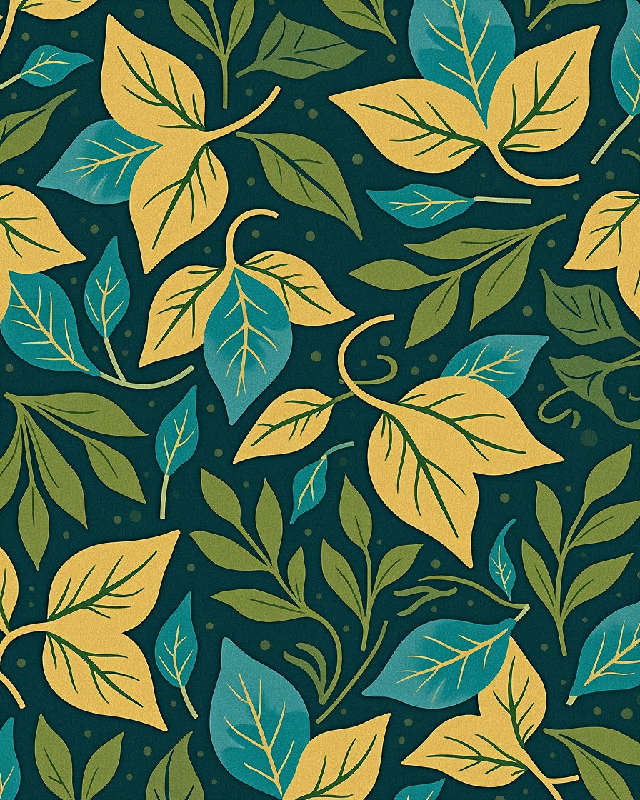Abstract Jungle Foliage Motif with Interlocking Leaf Shapes(Yellow)