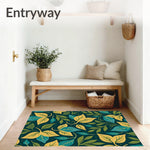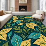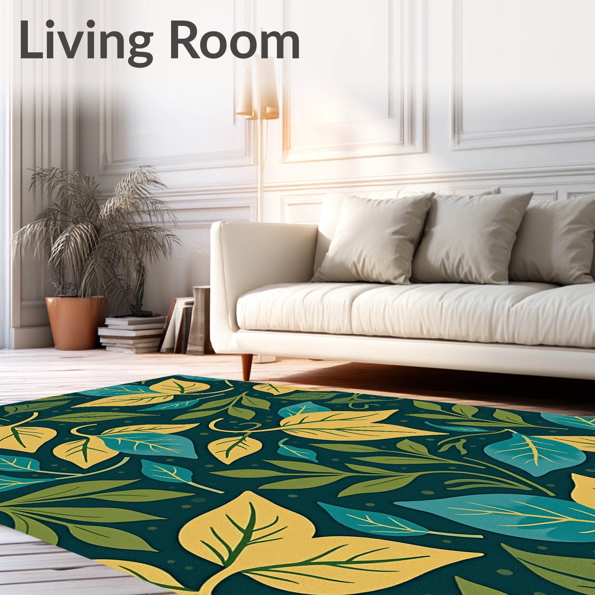 Ultra Soft Area Rug, Non Slip, Stain Resistant, Washable Area Rugs for Living Room, Bedroom, Abstract Jungle Foliage Motif with Interlocking Leaf Shapes(Yellow) Overview: