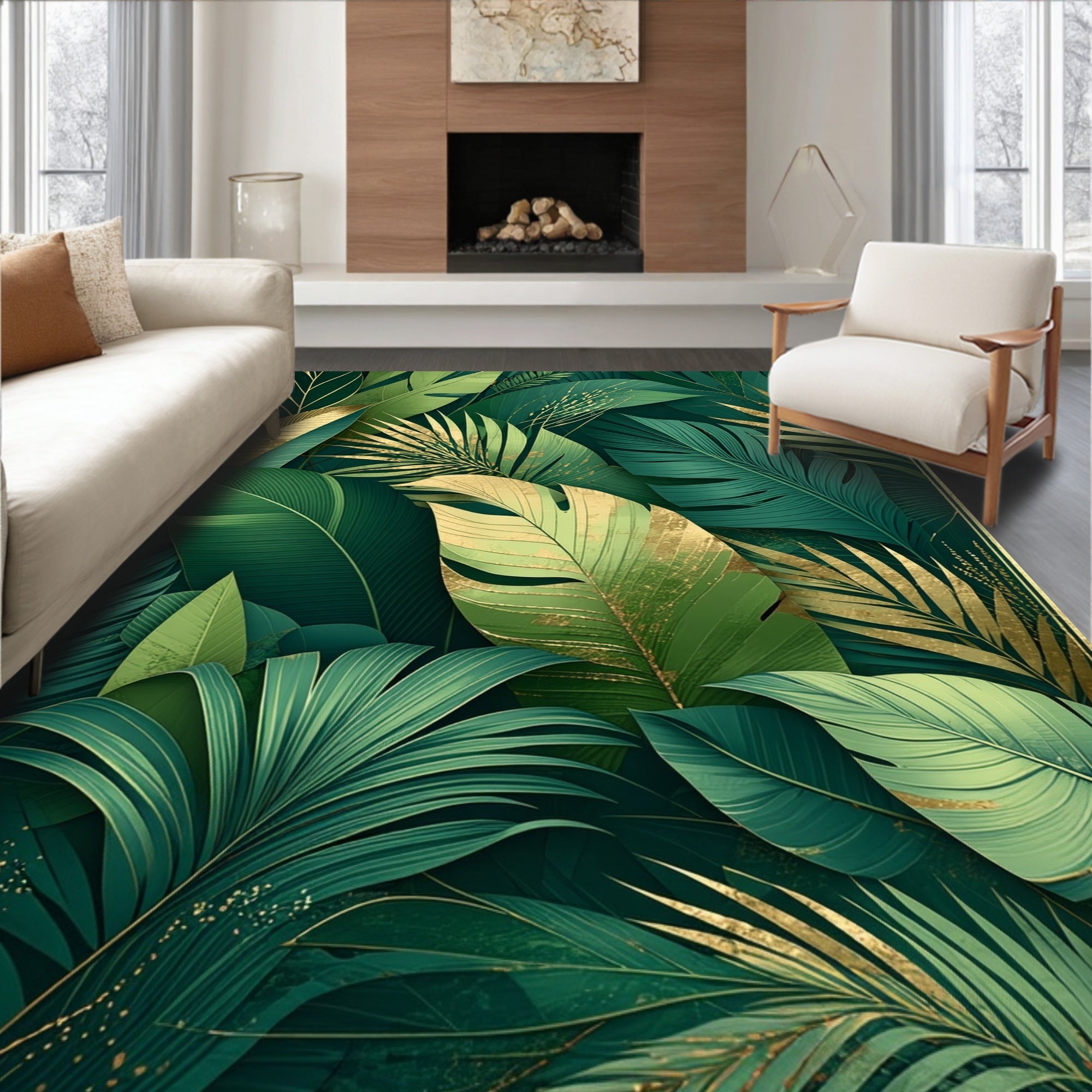 Ultra Soft Area Rug, Non Slip, Stain Resistant, Washable Area Rugs for Living Room, Bedroom, Abstract Jungle Leaf(Green) Overview: