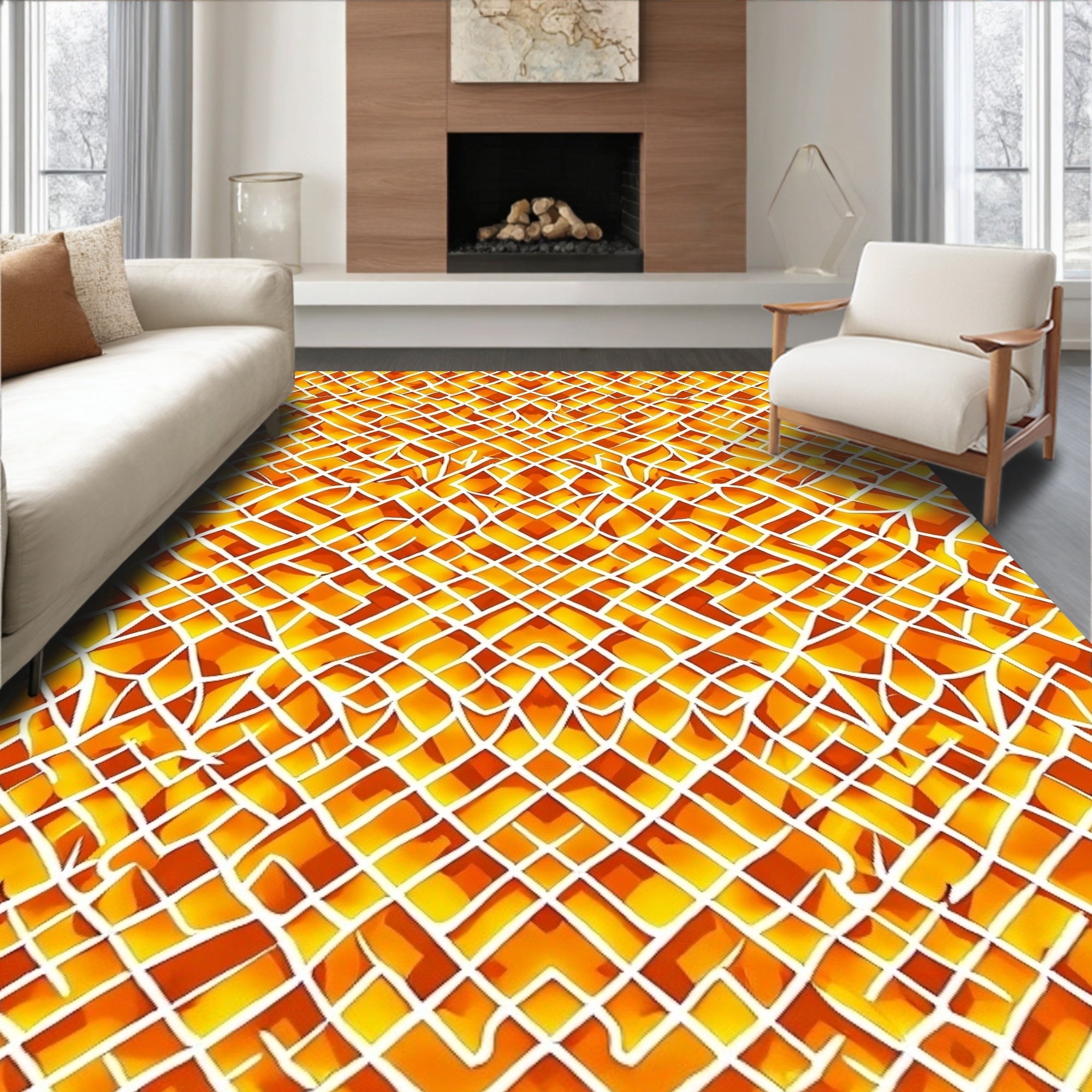Ultra Soft Area Rug, Non Slip, Stain Resistant, Washable Area Rugs for Living Room, Bedroom, Abstract Kaleidoscope Mosaic with Tessellated Shapes(Orange) Overview: