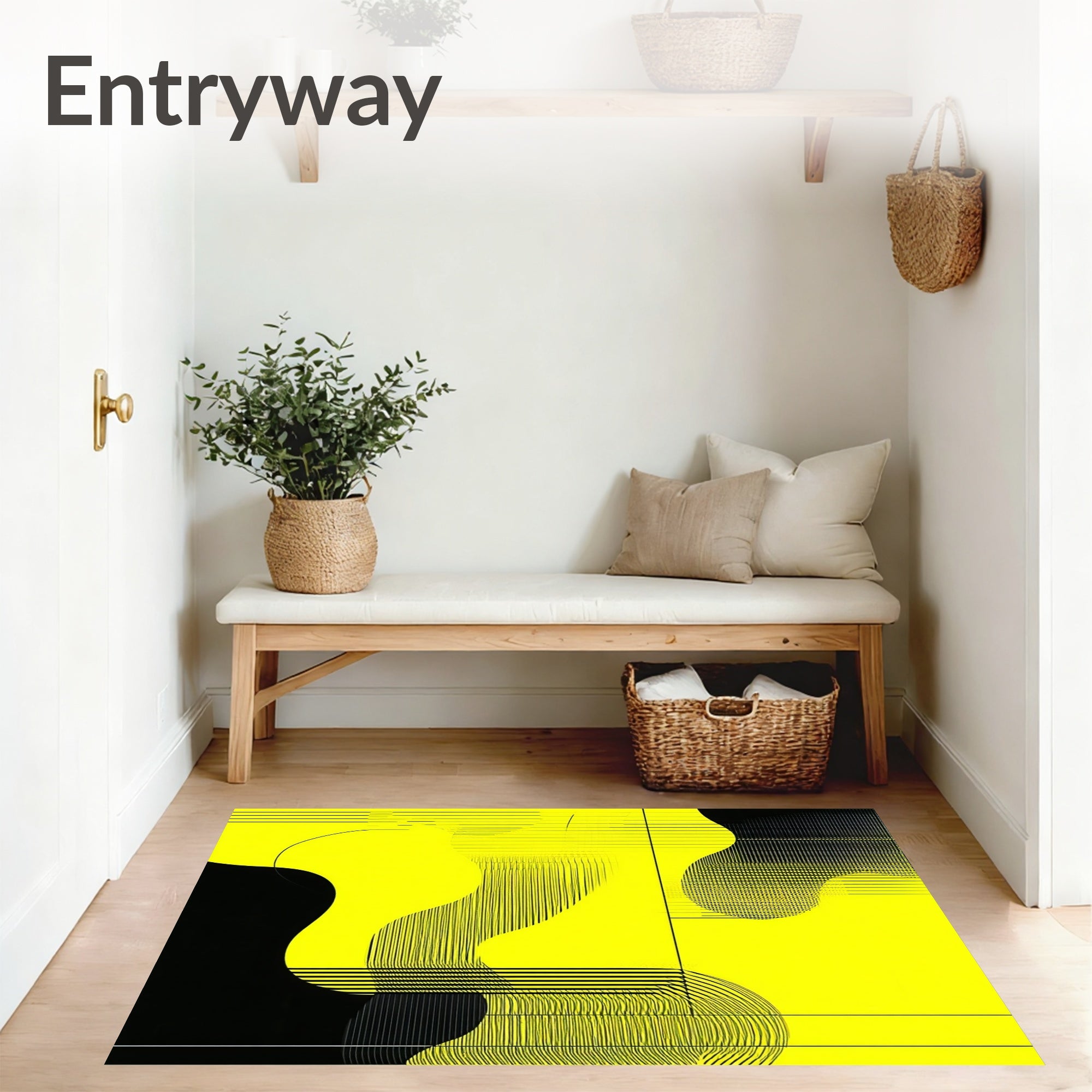Ultra Soft Area Rug, Non Slip, Stain Resistant, Washable Area Rugs for Living Room, Bedroom, Abstract Linear(Yellow) Overview: