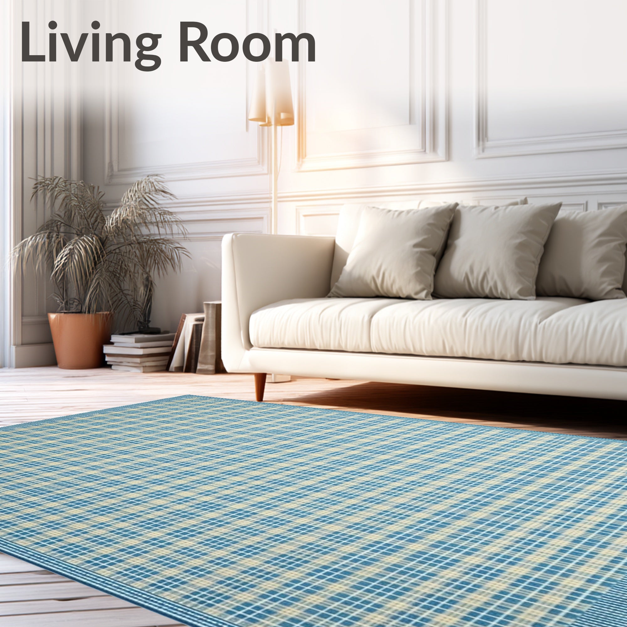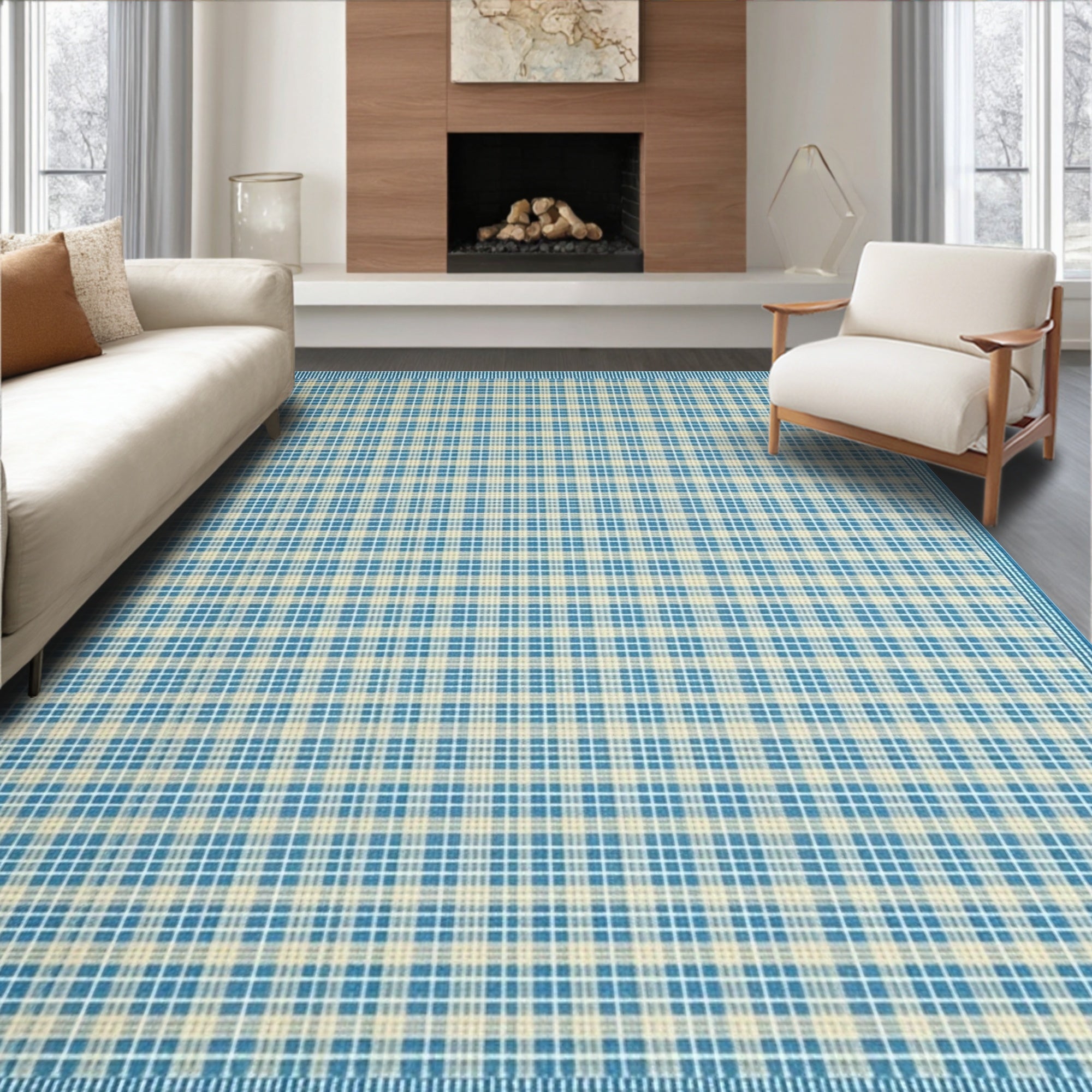 Ultra Soft Area Rug, Non Slip, Stain Resistant, Washable Area Rugs for Living Room, Bedroom, Abstract Loops Area Blue Beige Checkered Design(Blue) Overview: