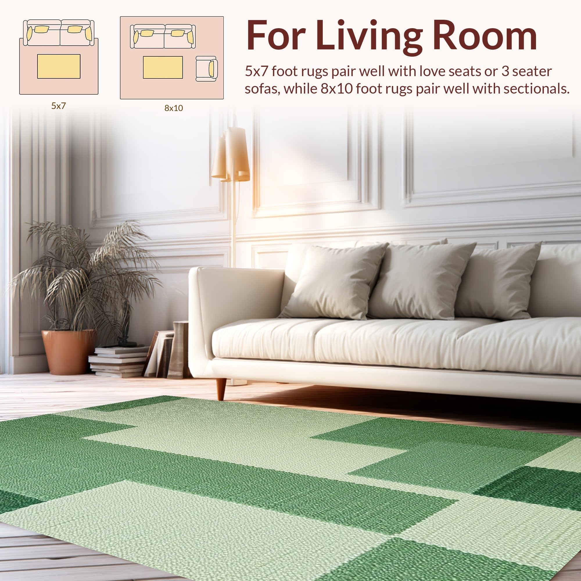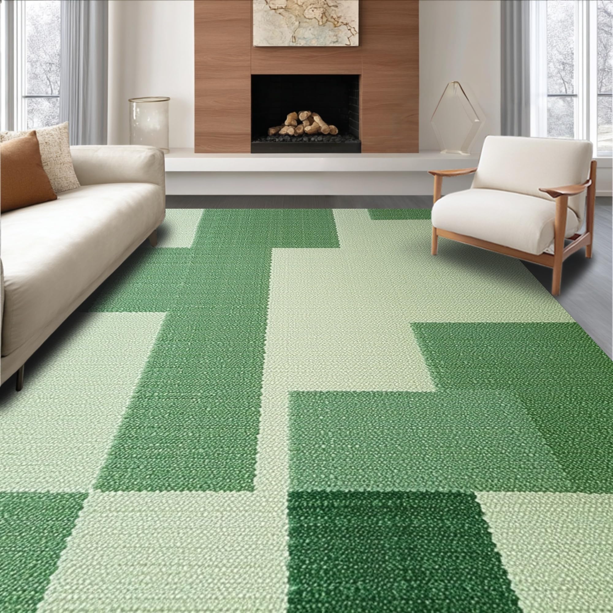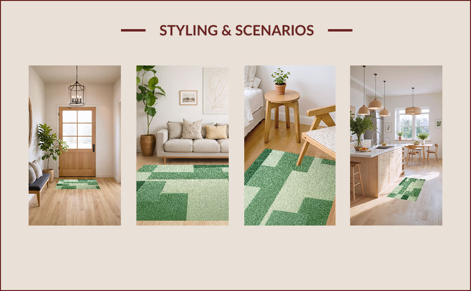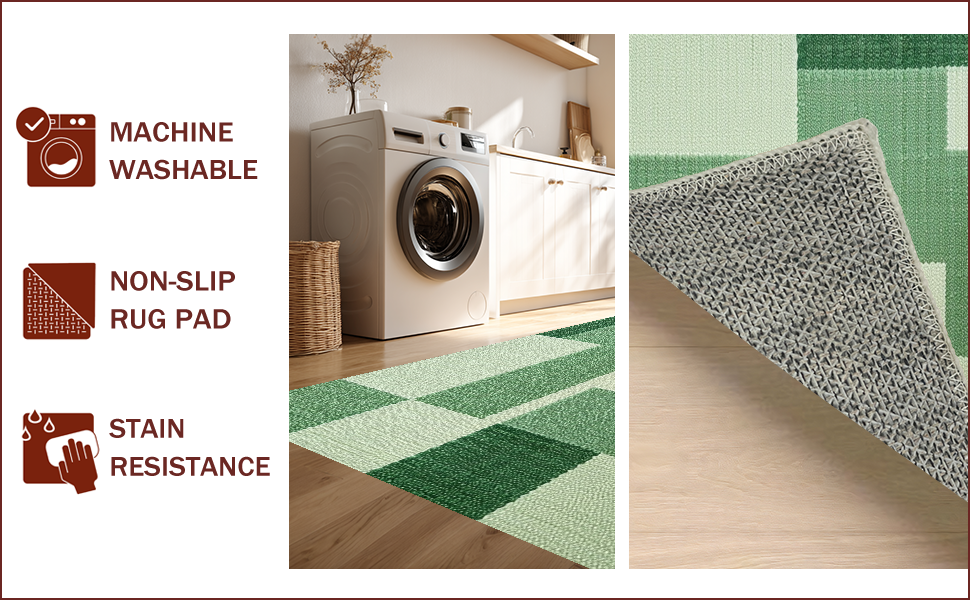 Ultra Soft Area Rug, Non Slip, Stain Resistant, Washable Area Rugs for Living Room, Bedroom, Abstract Low Pile Pet-Friendly Area Carpet(Green) Overview: