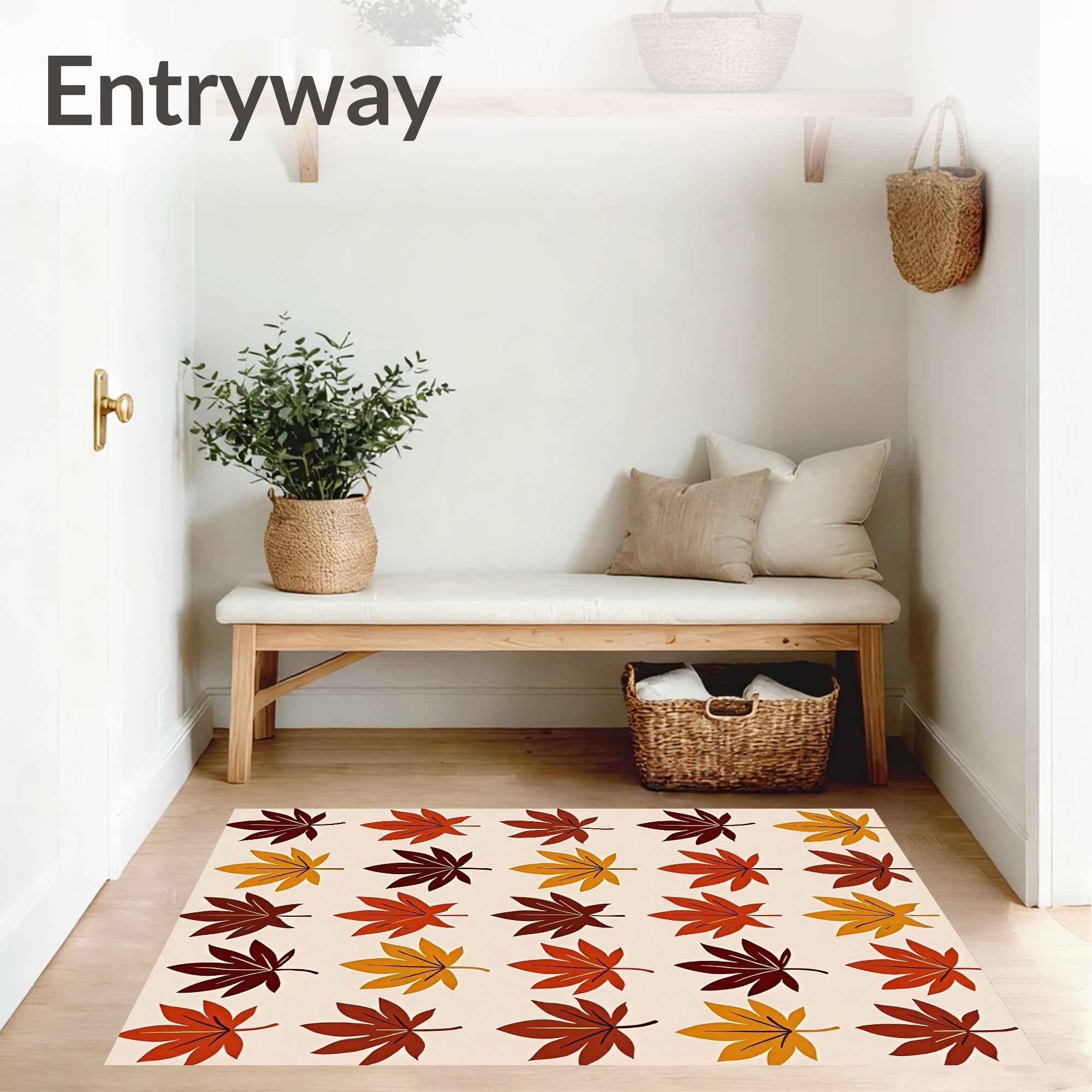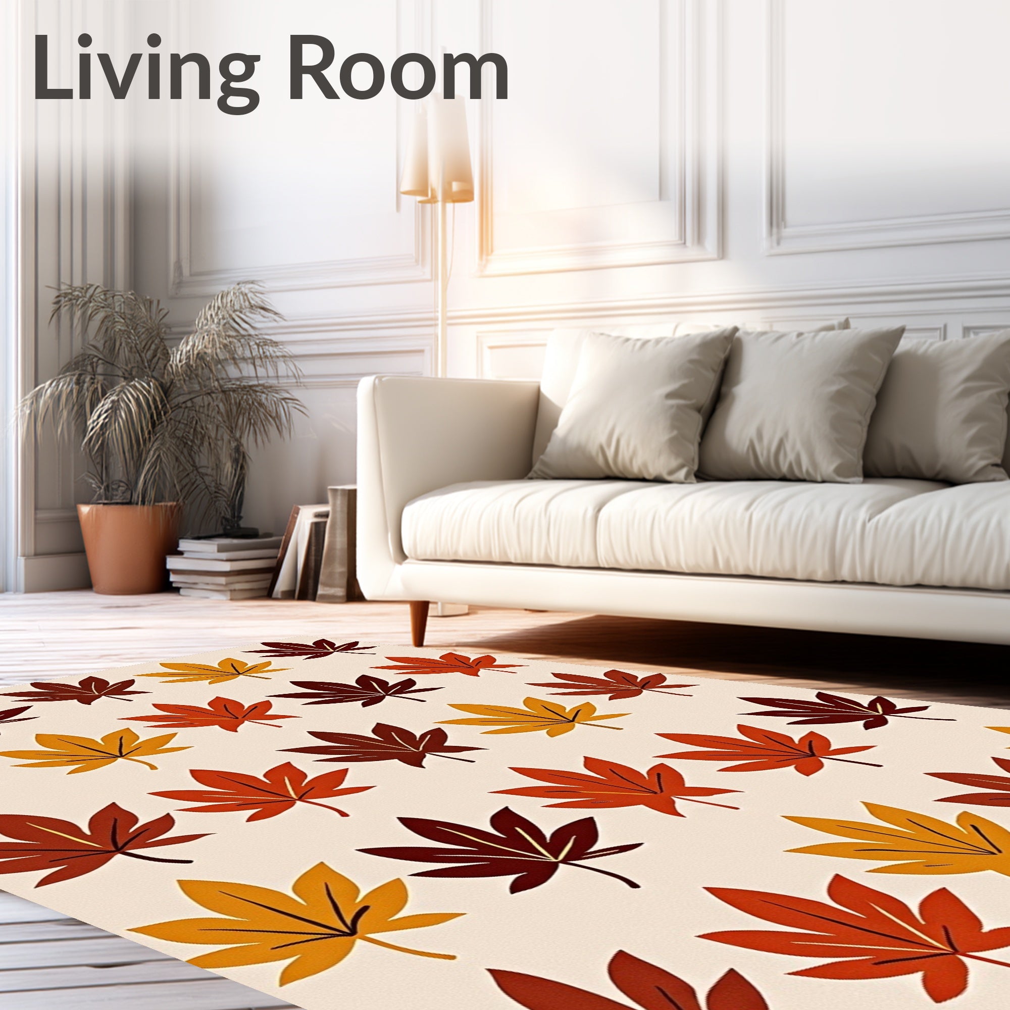 Ultra Soft Area Rug, Non Slip, Stain Resistant, Washable Area Rugs for Living Room, Bedroom, Abstract Maple Leaves Scattered Across Textured Background(Orange) Overview: