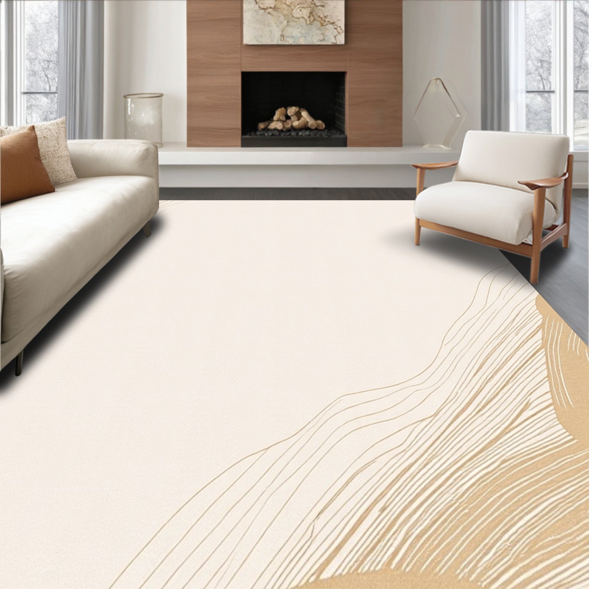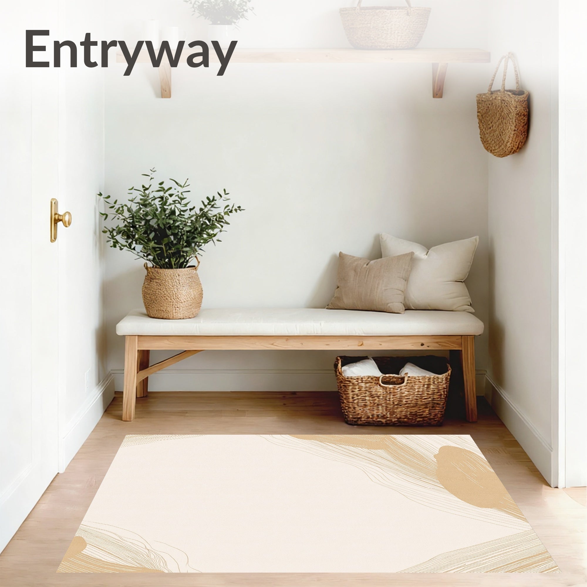 Ultra Soft Area Rug, Non Slip, Stain Resistant, Washable Area Rugs for Living Room, Bedroom, Abstract Minimalist Brushstroke Contemporary Luxury Modern(Beige) Overview: