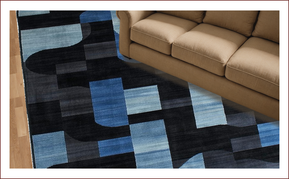 Ultra Soft Area Rug, Non Slip, Stain Resistant, Washable Area Rugs for Living Room, Bedroom, Abstract Monochrome Artful Design(Blue) Overview: