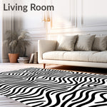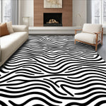 Flatwoven High Traffic Area Rug, Abstract Monochrome Wave Stripe Design with Artistic Curves, Non Slip, Stain Resistant, Washable Area Rugs for Living Room, Bedroom (Black) Overview: