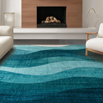 Ultra Soft Area Rug, Non Slip, Stain Resistant, Washable Area Rugs for Living Room, Bedroom, Abstract Ombre Design Round Rug Featuring Striking Shades of Teal and Blue(Blue) Overview: