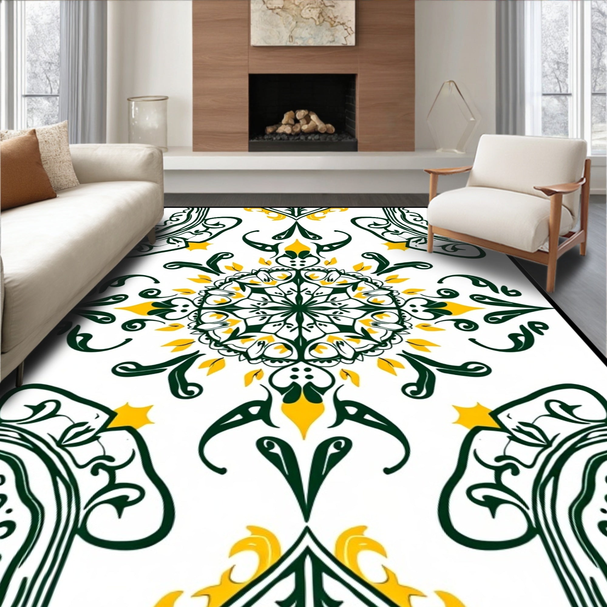Ultra Soft Area Rug, Non Slip, Stain Resistant, Washable Area Rugs for Living Room, Bedroom, Abstract Paisley Damask Design with Swirling Ornamental Flourishes(White) Overview:
