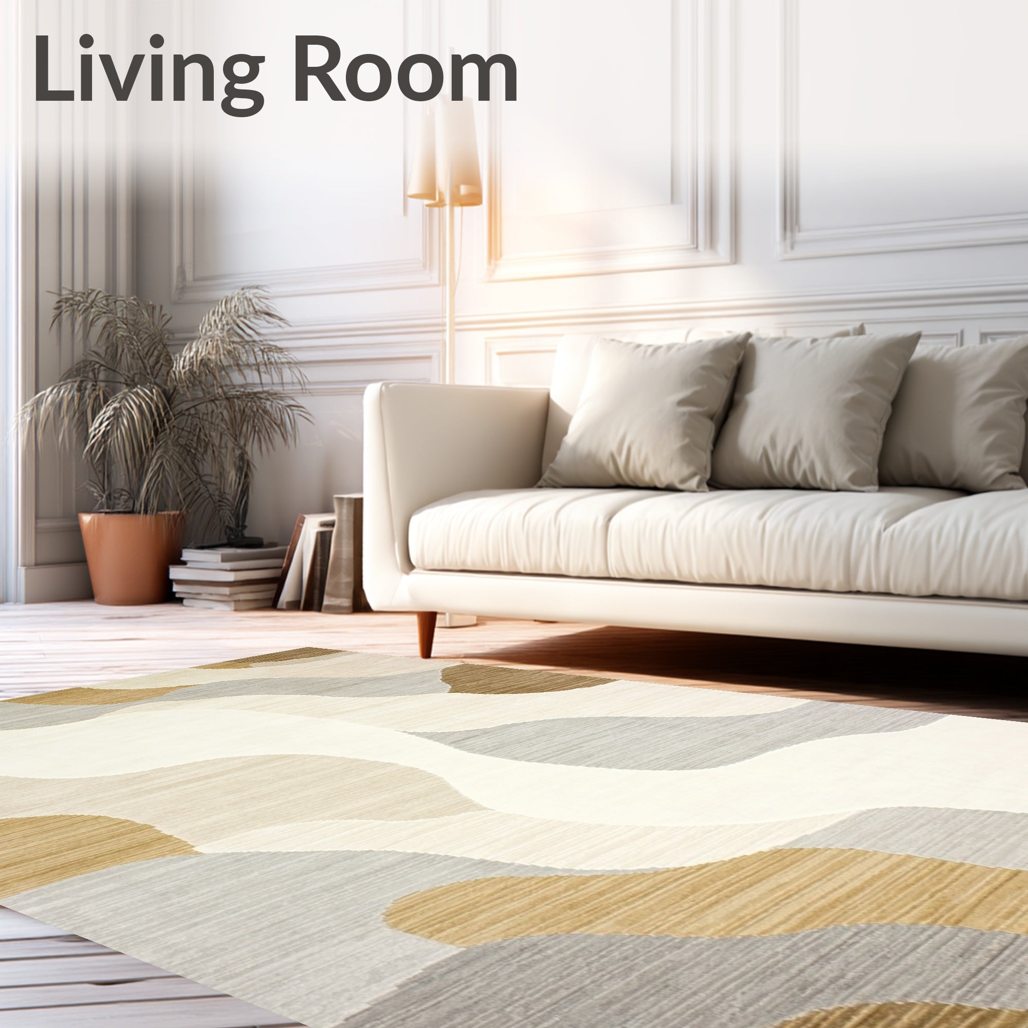 Ultra Soft Area Rug, Non Slip, Stain Resistant, Washable Area Rugs for Living Room, Bedroom, Abstract Riverbed Modern Rustic Beige Cream Runner Area(Beige) Overview: