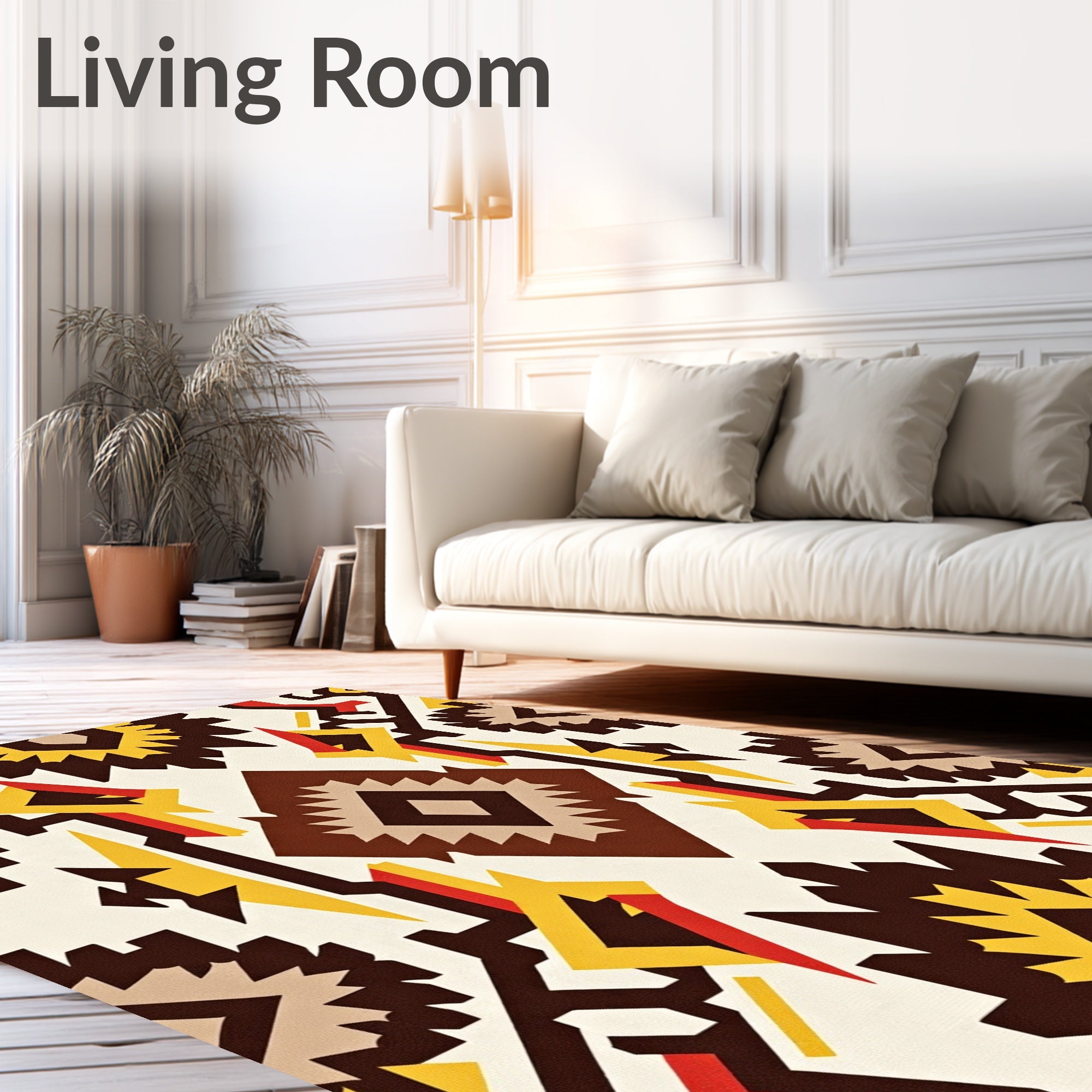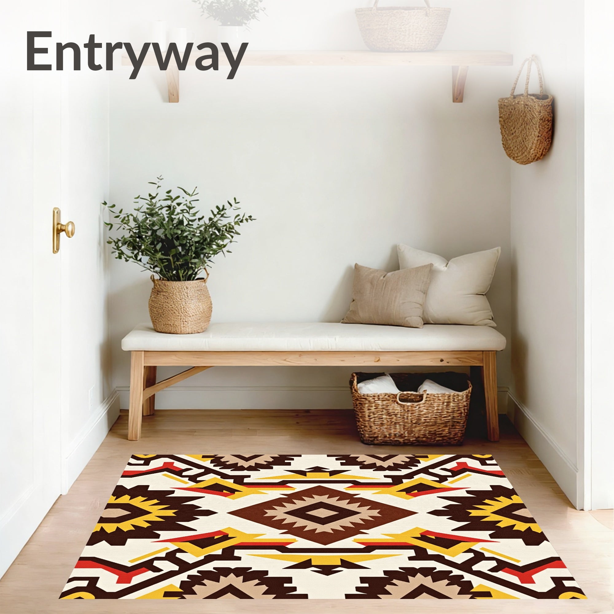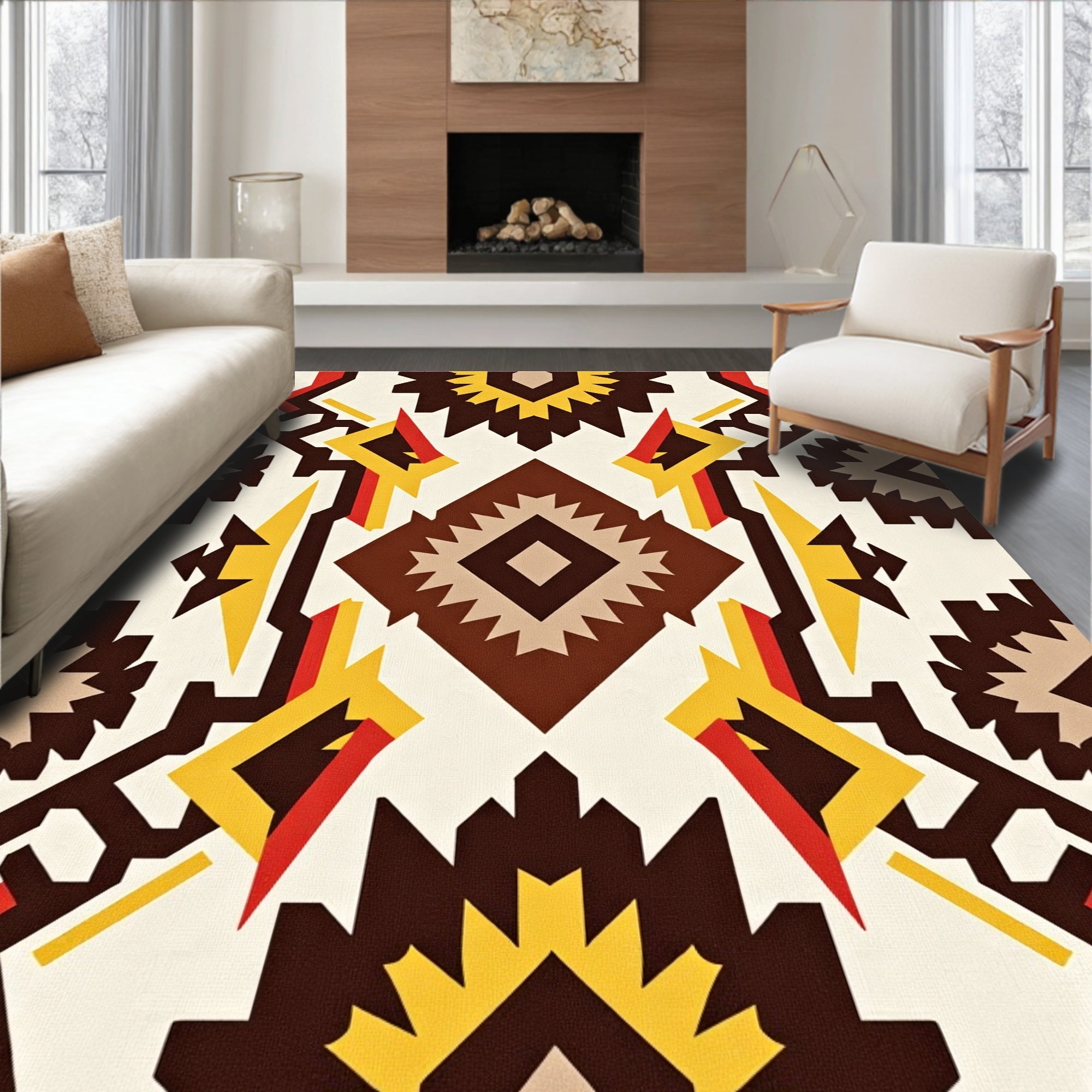 Flatwoven High Traffic Area Rug, Abstract Scatter with Earthy Tone Aztec Inspired Graphics, Non Slip, Stain Resistant, Washable Area Rugs for Living Room, Bedroom (Brown) Overview:
