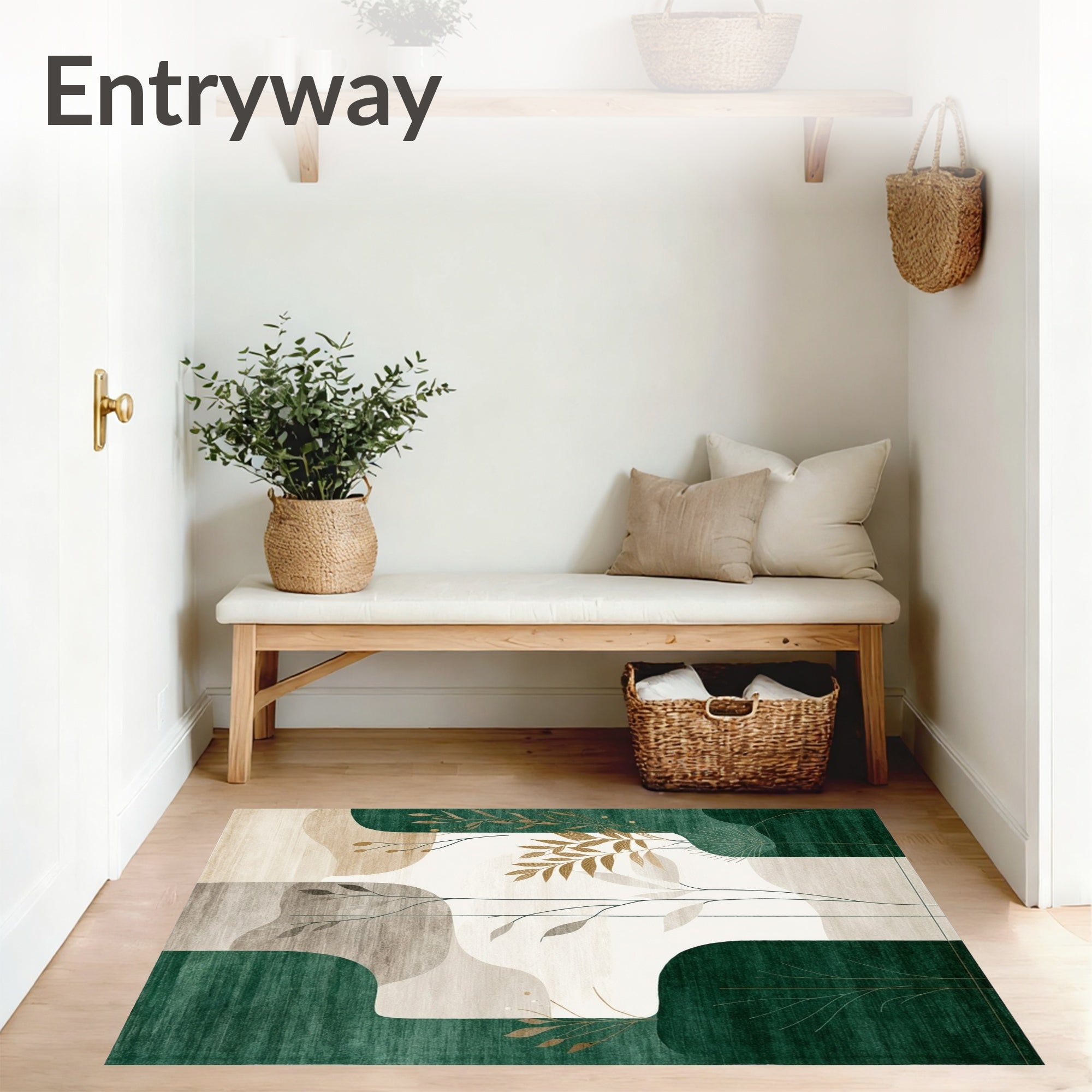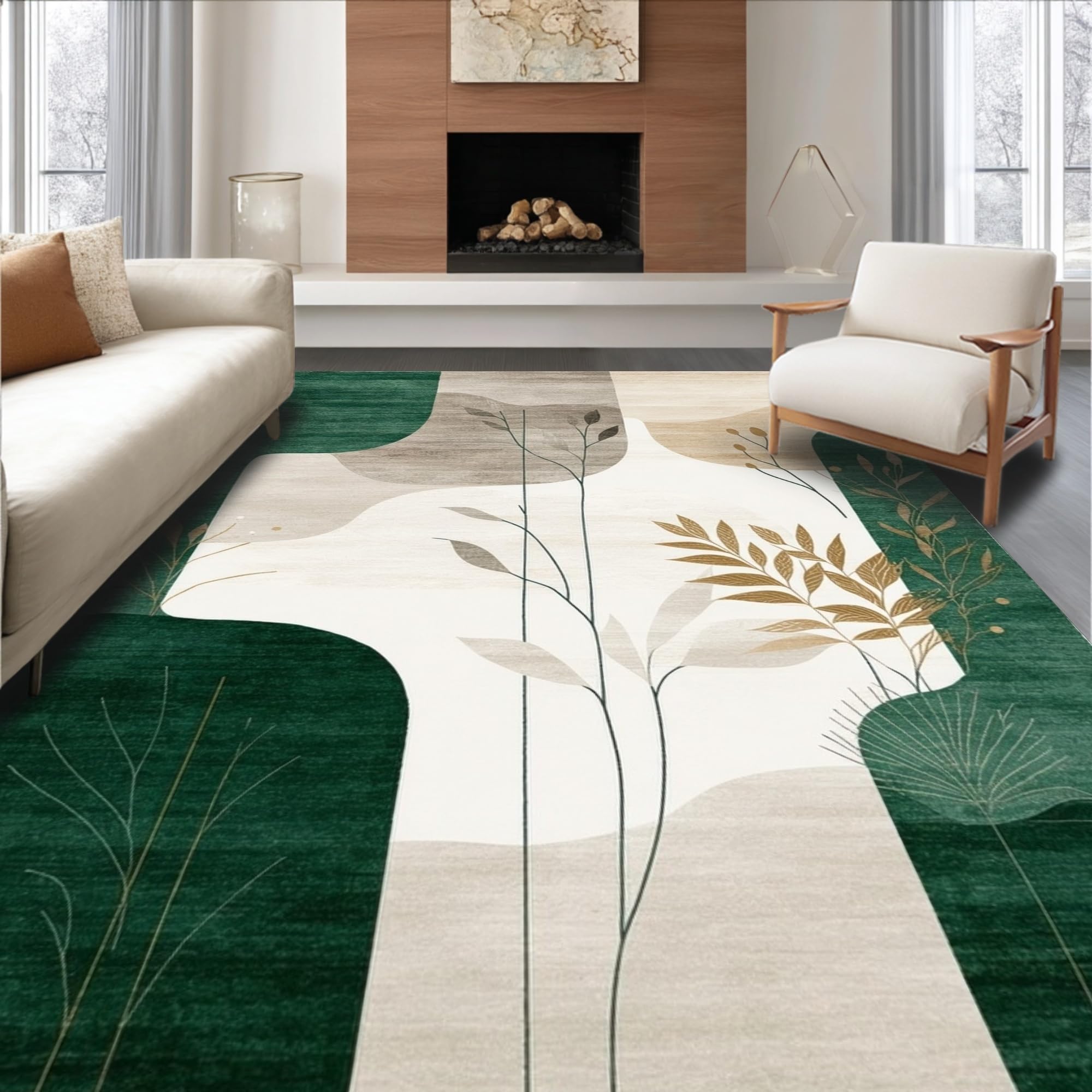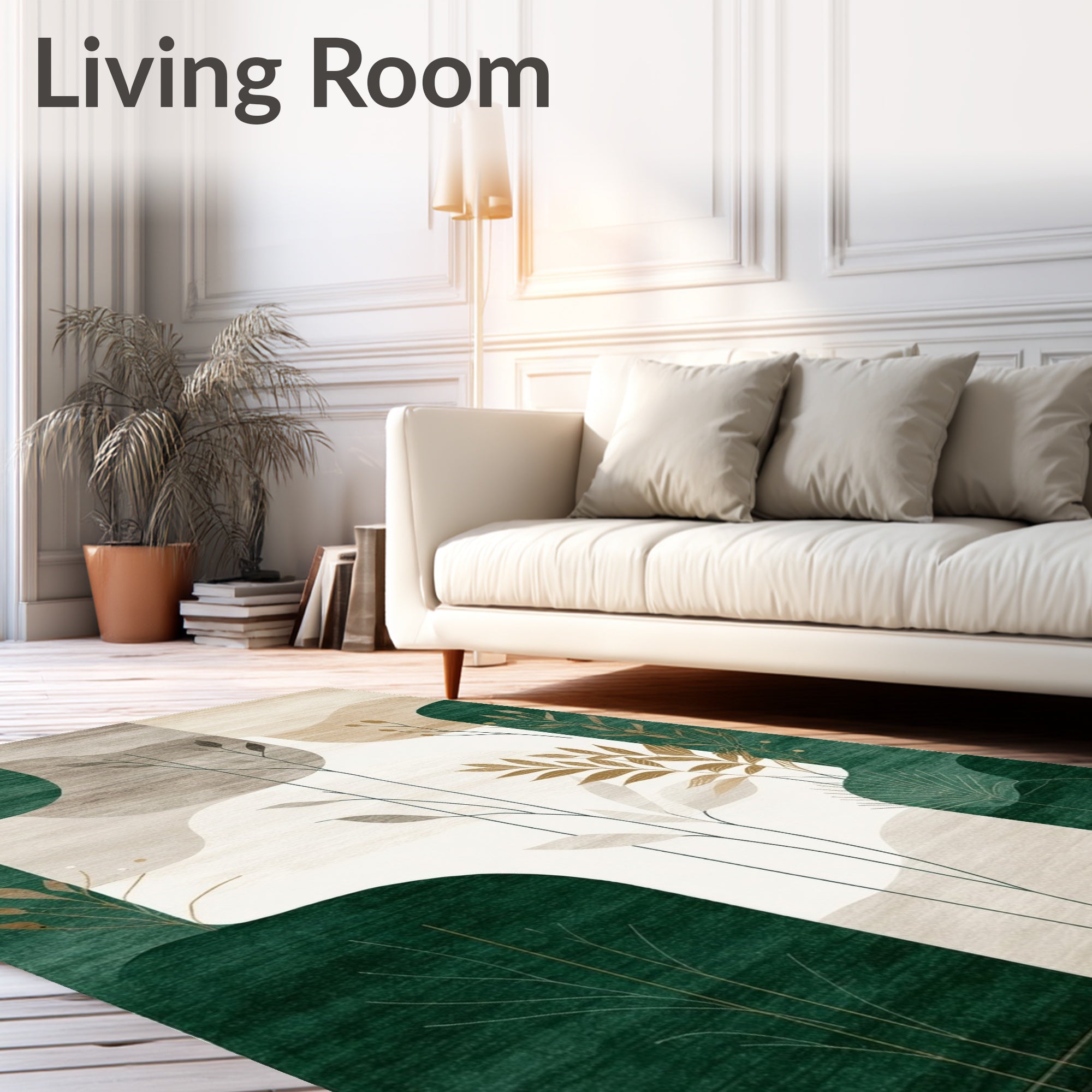 Ultra Soft Area Rug, Non Slip, Stain Resistant, Washable Area Rugs for Living Room, Bedroom, Abstract Shape Beige Dark Green(Green) Overview: