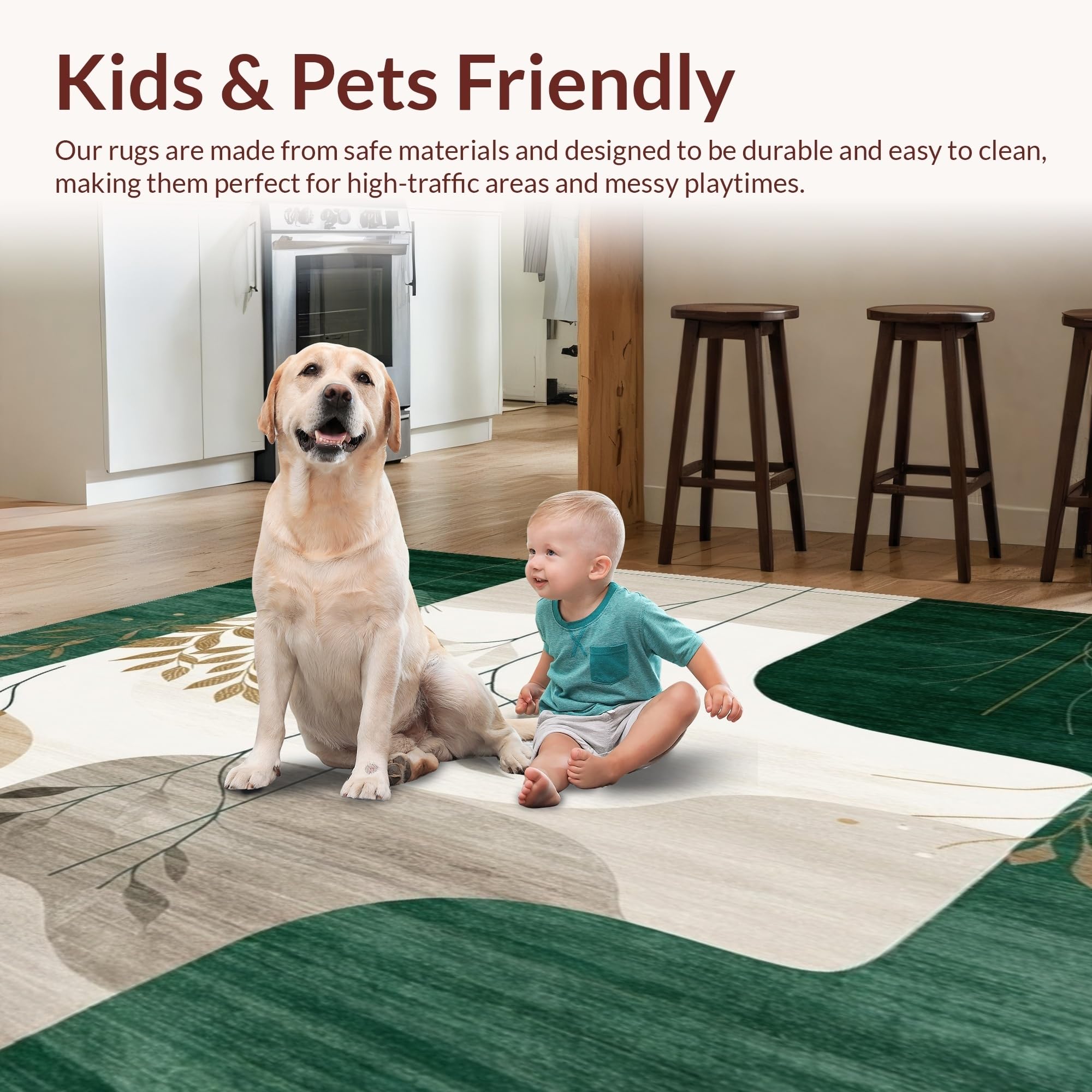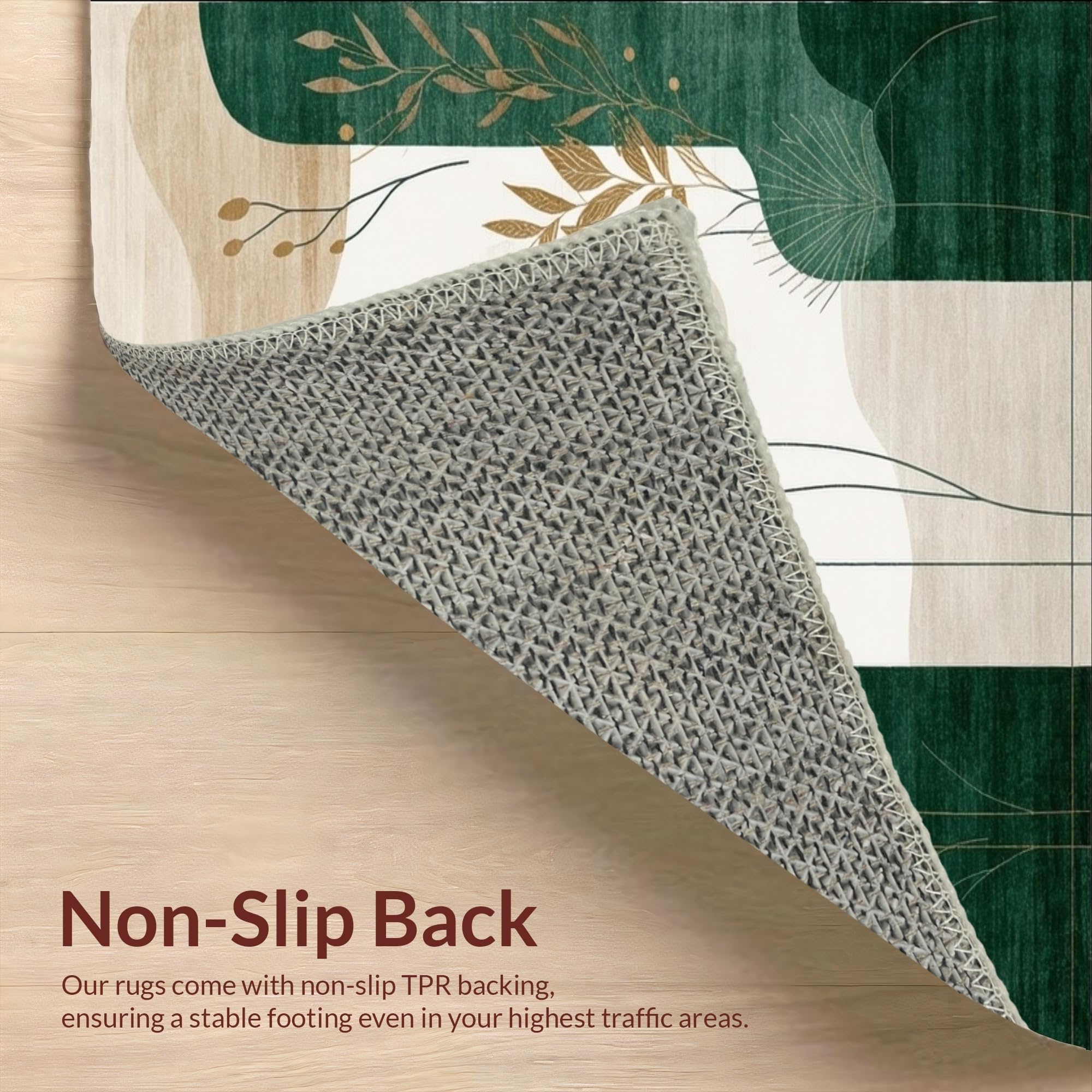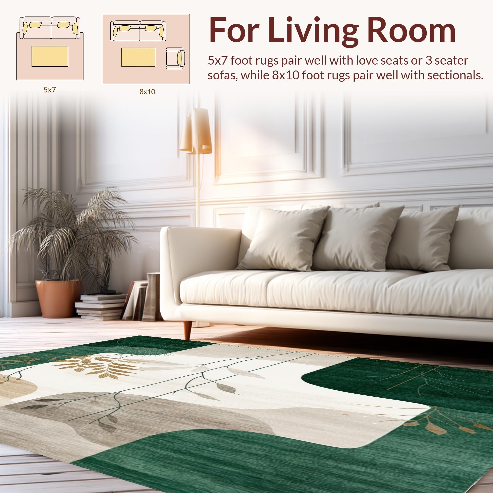Ultra Soft Area Rug, Non Slip, Stain Resistant, Washable Area Rugs for Living Room, Bedroom, Abstract Shape Beige Dark Green(Green) Overview: