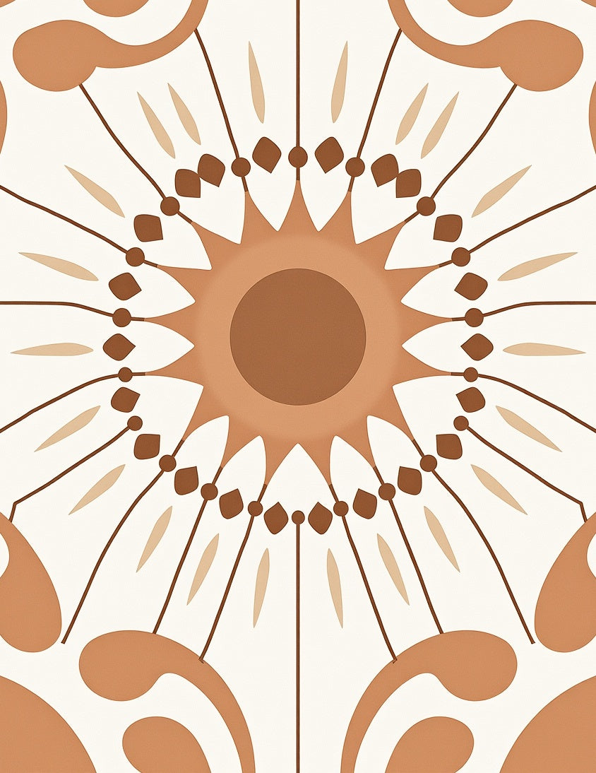 Abstract Sunburst Mosaic with Minimalist Petal Motifs(Brown)