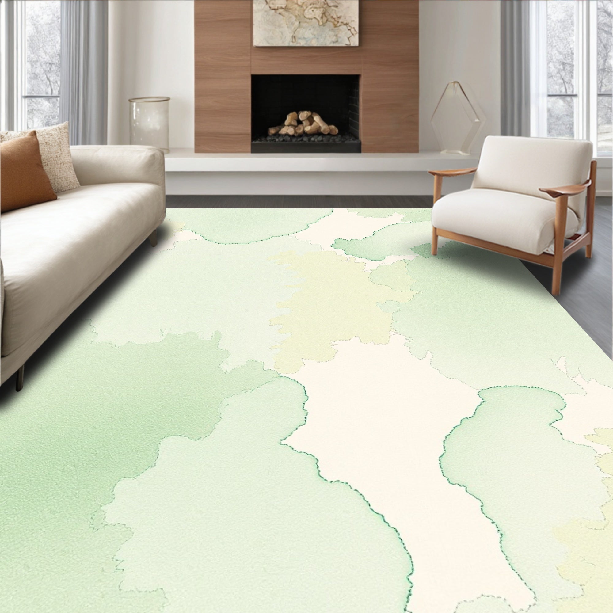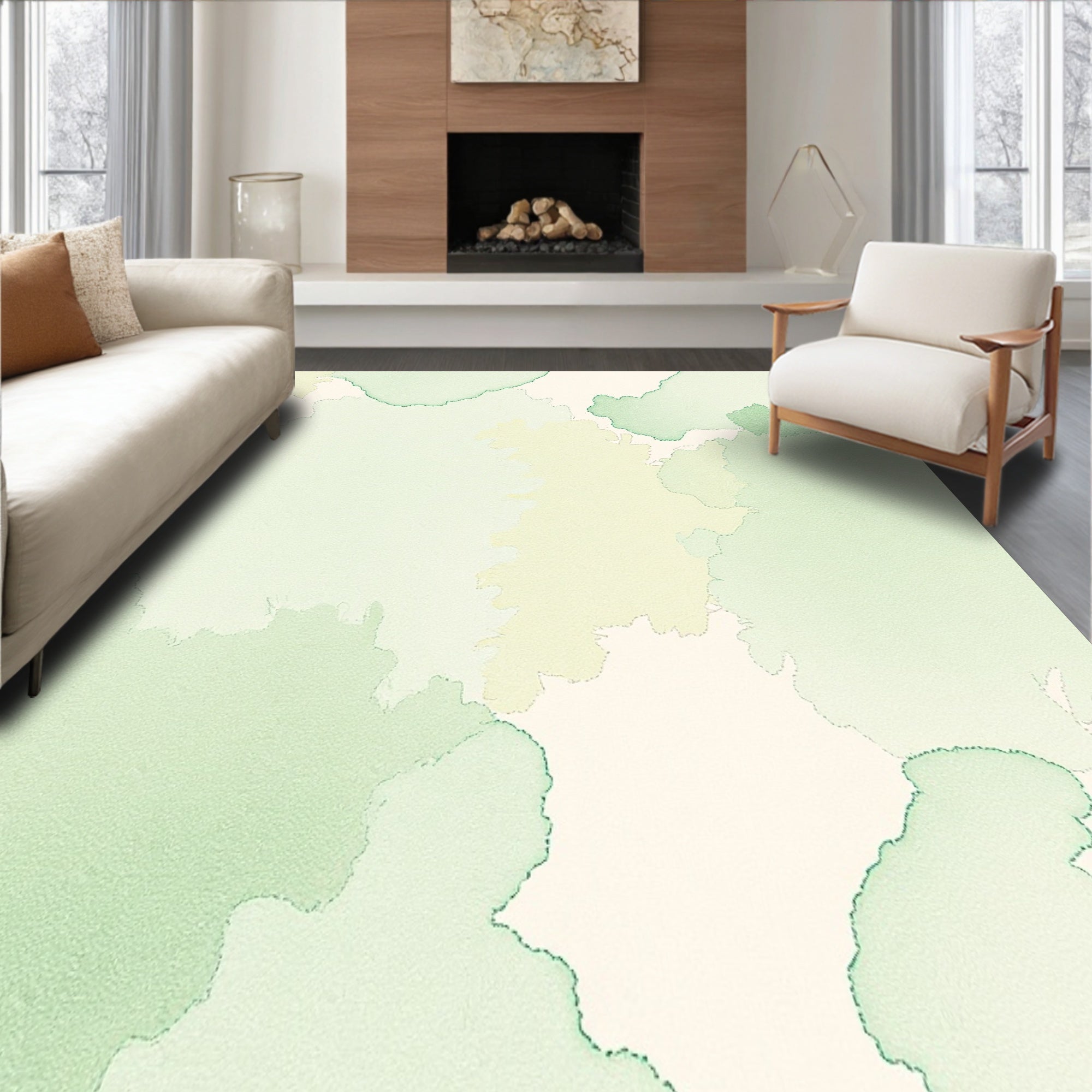 Ultra Soft Area Rug, Non Slip, Stain Resistant, Washable Area Rugs for Living Room, Bedroom, Abstract Watercolor Brush Stroke Artistic Splatter Contemporary(Green) Overview: