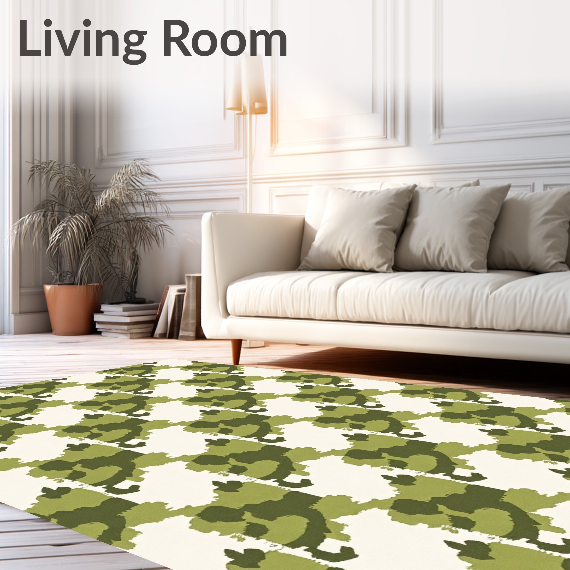 Ultra Soft Area Rug, Non Slip, Stain Resistant, Washable Area Rugs for Living Room, Bedroom, Abstract Watercolor Brushstroke Artistic Distressed Boho Lattice(Green) Overview: