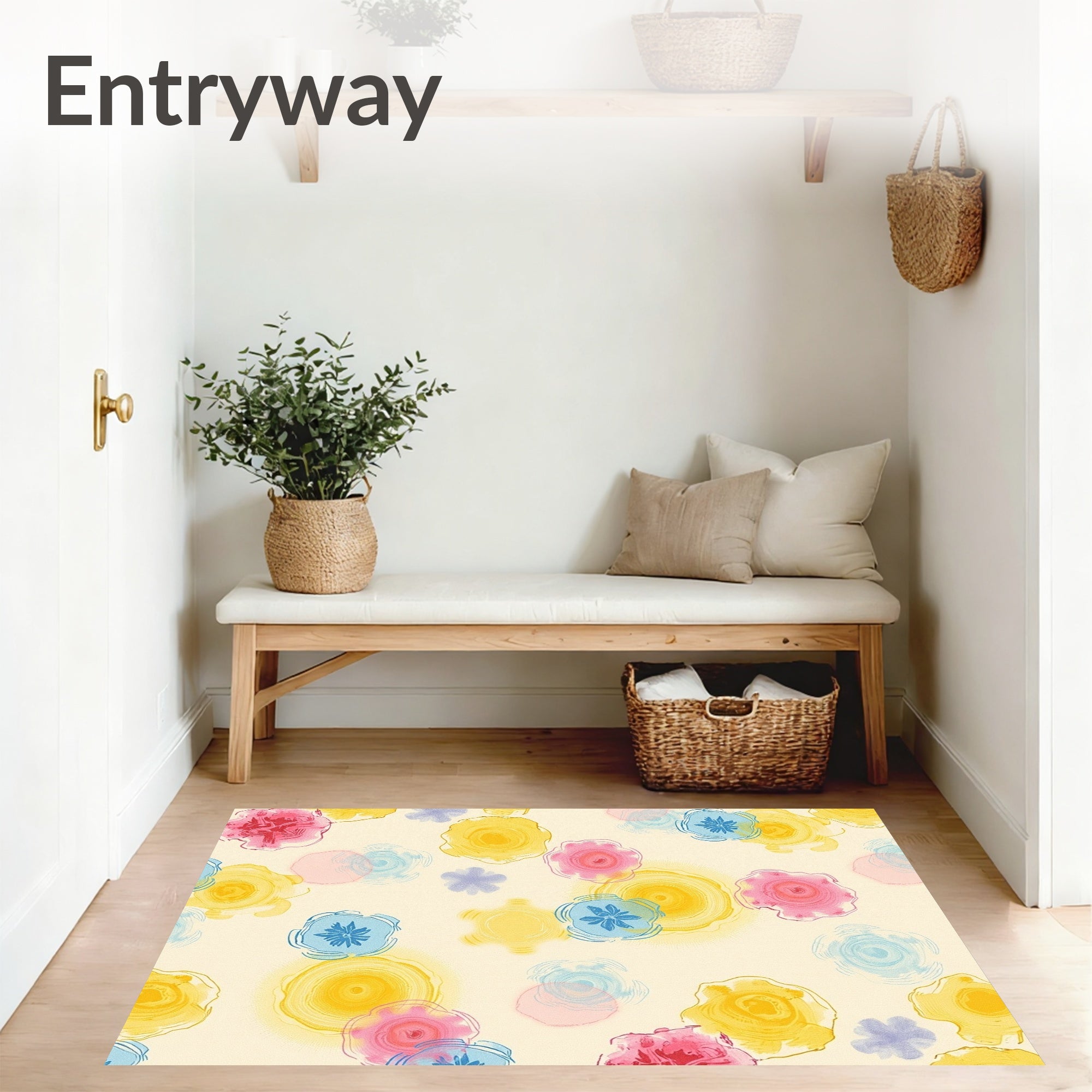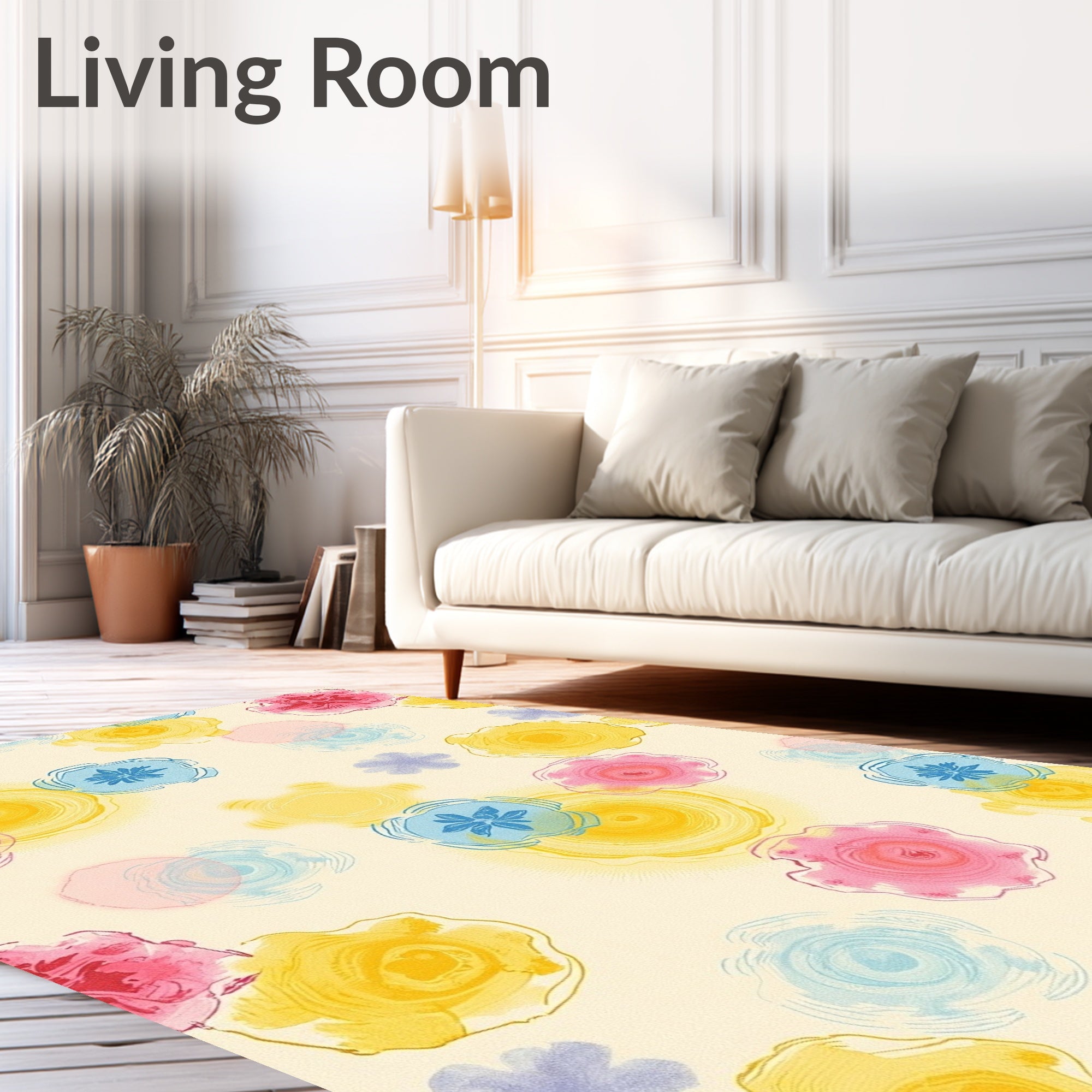 Ultra Soft Area Rug, Non Slip, Stain Resistant, Washable Area Rugs for Living Room, Bedroom, Abstract Watercolor Brushstroke Artistic Symphony(Yellow) Overview:
